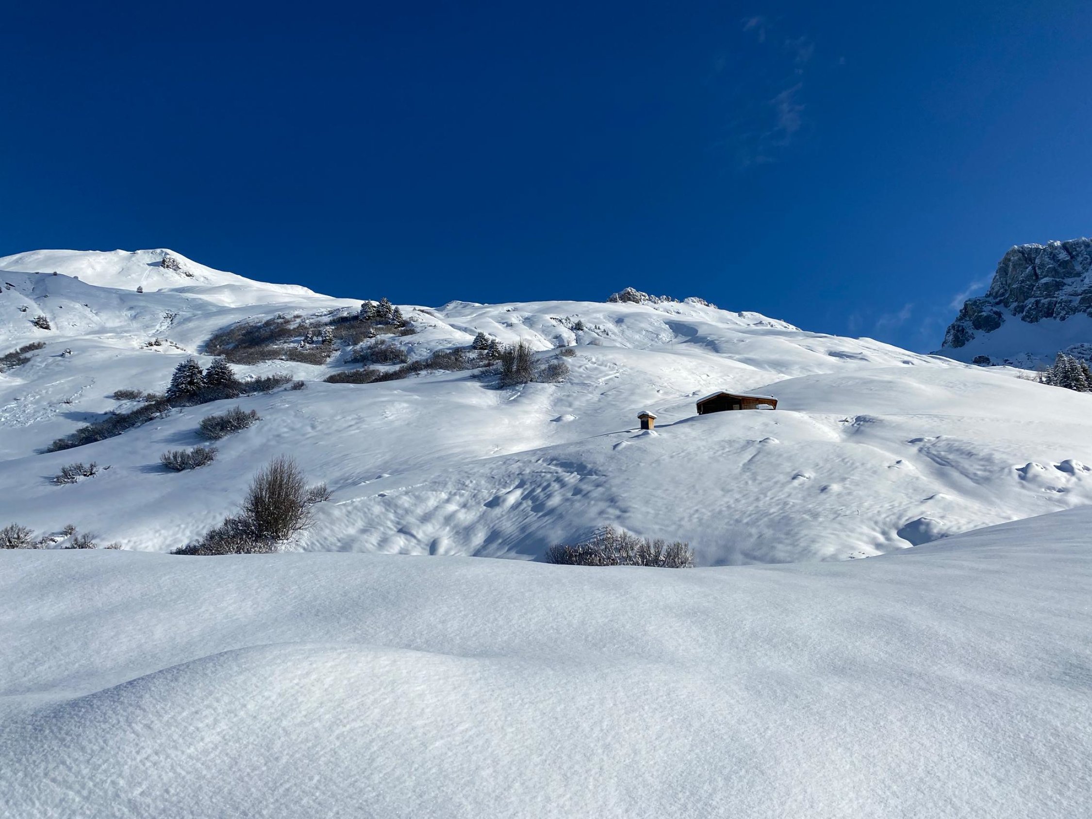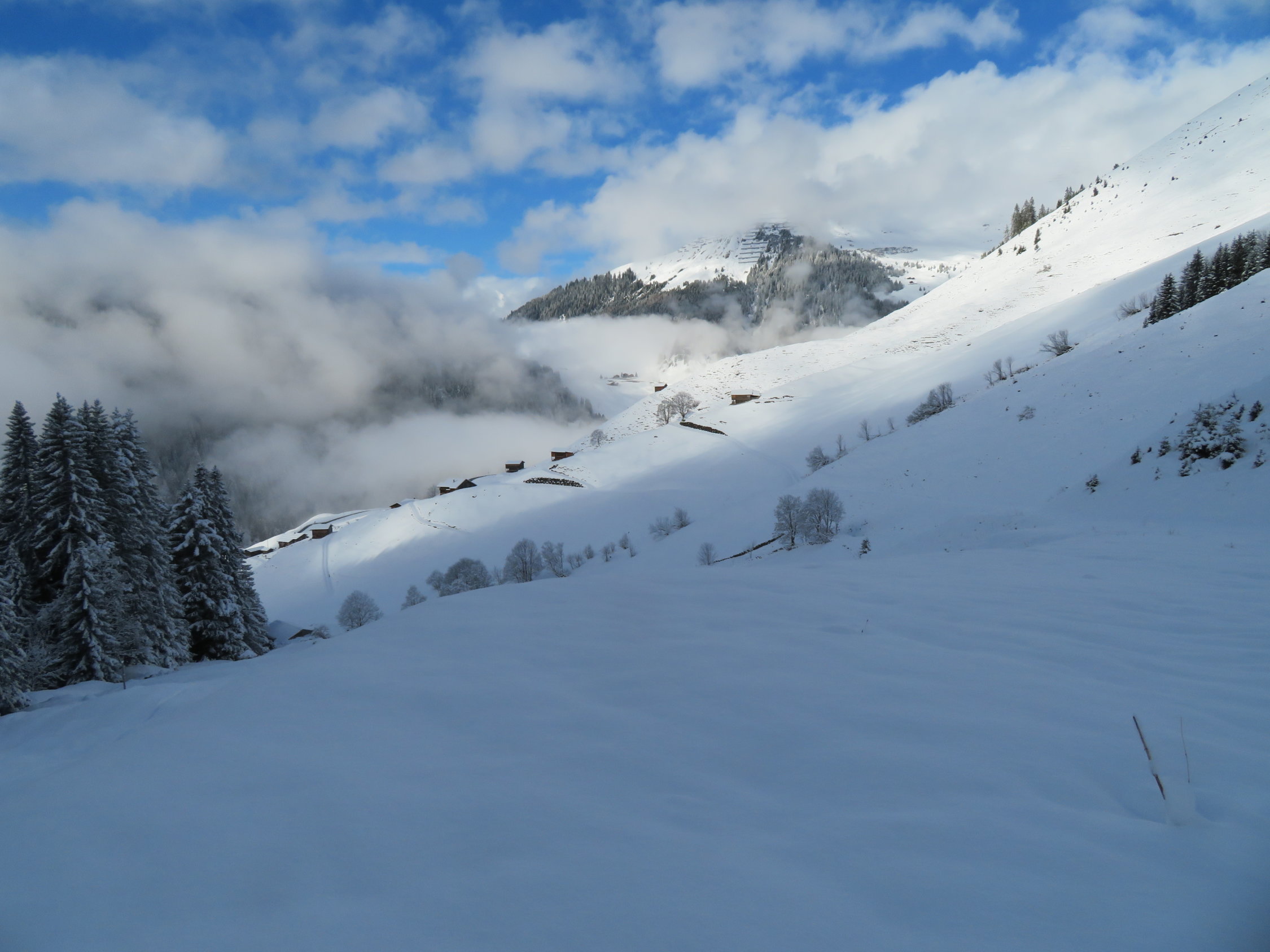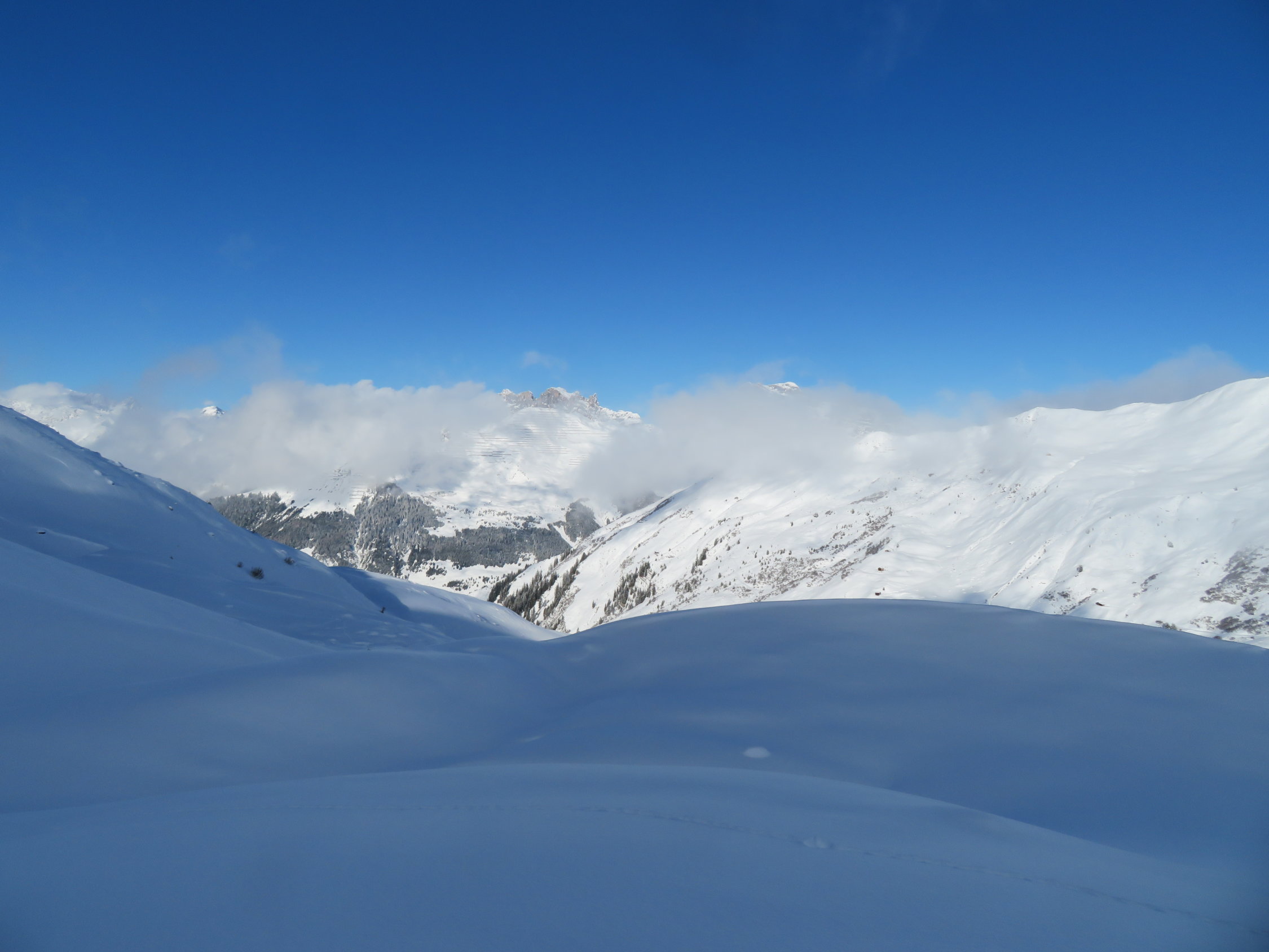 Ab 1600m machbare Verhältnisse. Im Gipfelbereich gute Verhältnisse. Unter 1600 generell noch zu wenig Schnee vorhanden. Von der untersten Sektion lohnt es sich nicht Fotos zu zeigen.