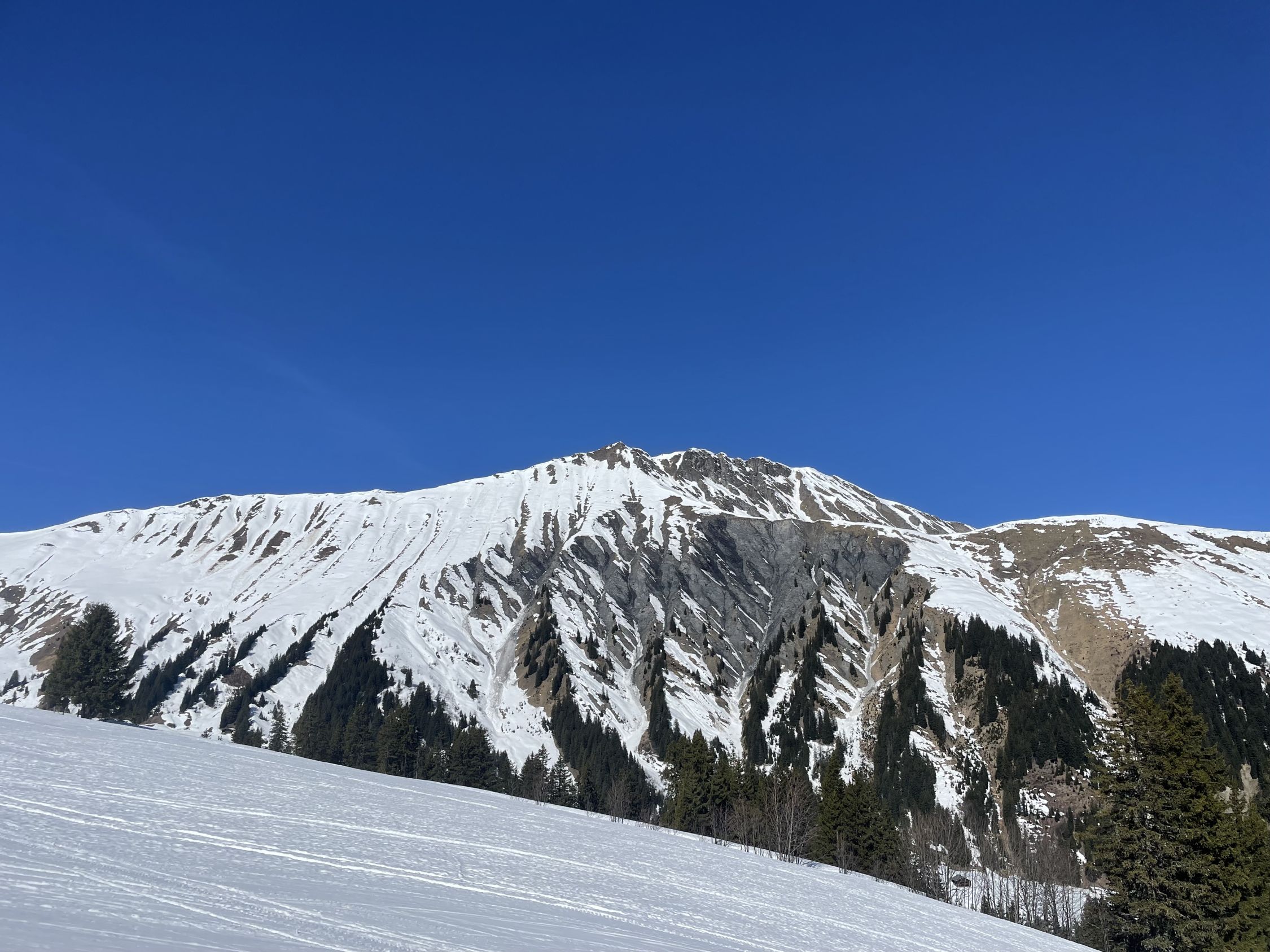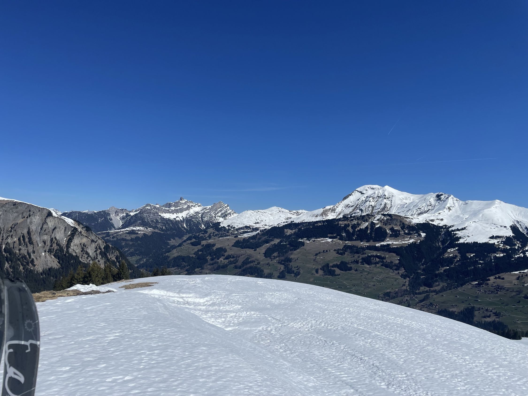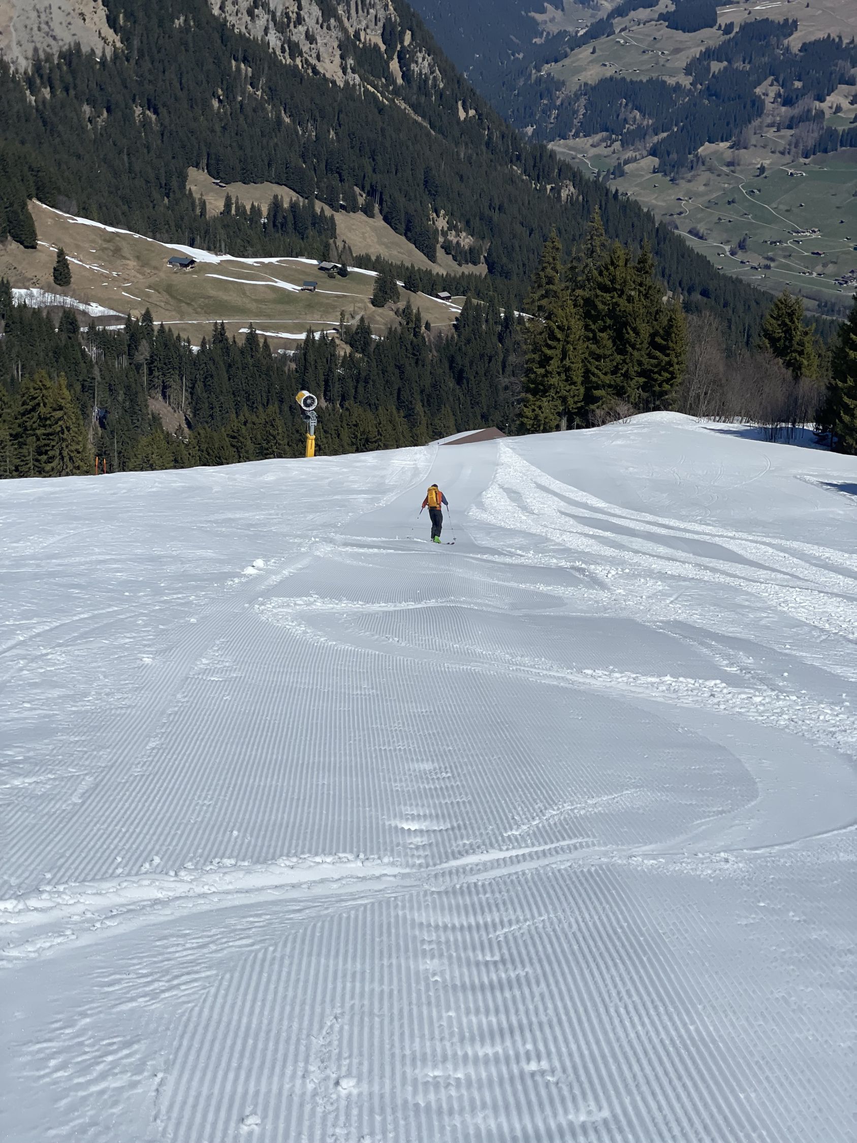 Ich war heute mit Summit 41 unterwegs, wir wollten ursprünglich auf den Buufal, entschlossen uns aber aufgrund der hohen Temperaturen anders. Aufstieg erfolgte von der Talstation Wallegg, das Skigebiet hat seit gestern geschlossen. Die Kunstschneepiste ist top präpariert und war trotz 5 Grad um 09.15 gefroren (nein ich verstehe diese Physik auch nicht:-). Aufstieg via Mittelstation und dann bis Mülkersblatten, den eher horizontalen Rest schenkten wir uns. Nach schöner Rast auf trockener Bank machten wir uns um die Mittagszeit an die Abfahrt. Diese war von oben bis unten ein Sulztraum, siehe Fotos. Wir waren die einzigen Tourenfahrer heute.