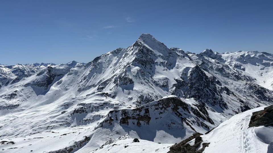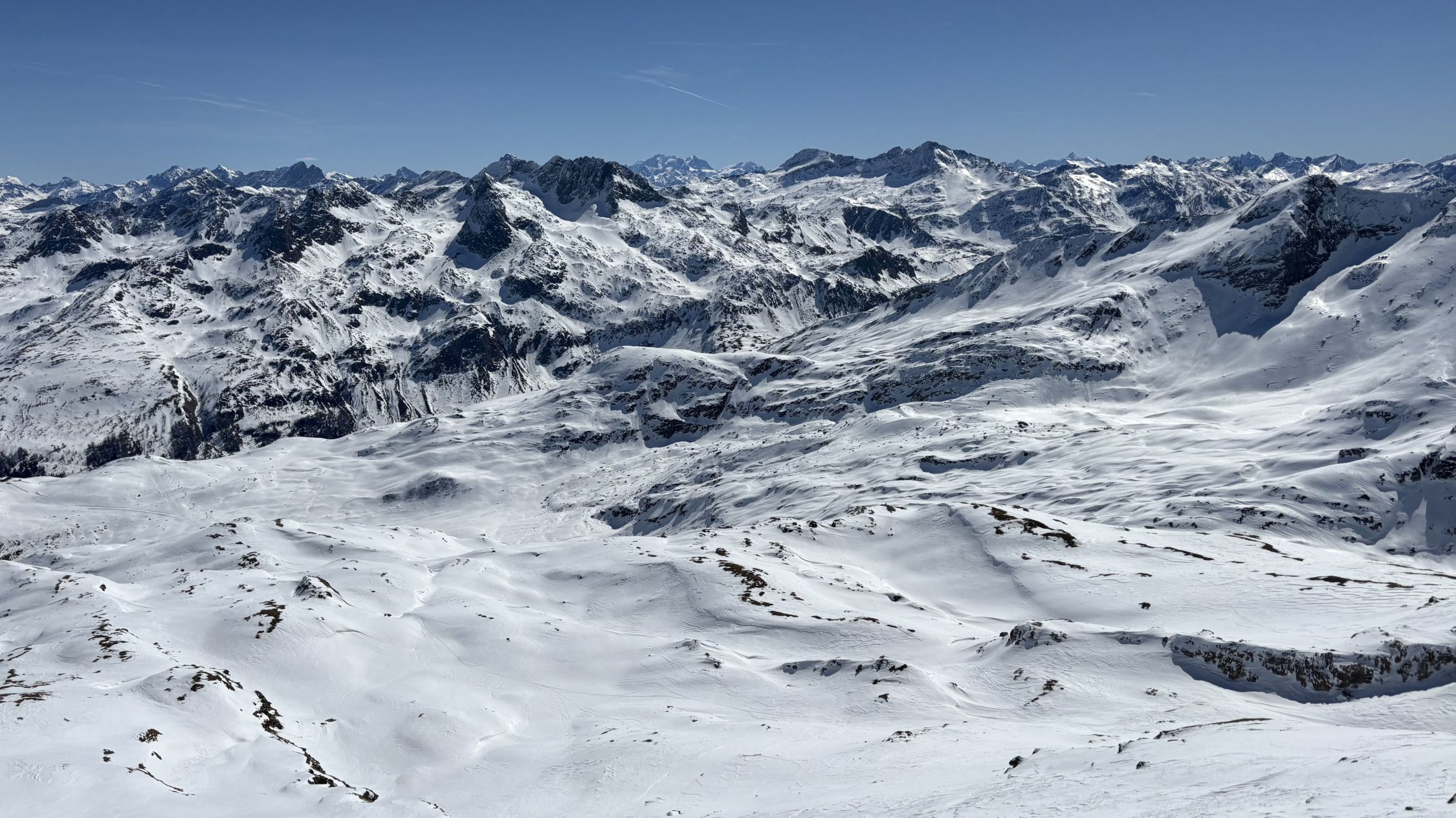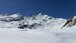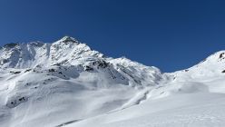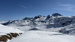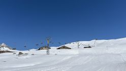 Die Südosthänge waren schon um 10 Uhr sehr weich, daher hätten die Harscheisen zu Hause bleiben können.
