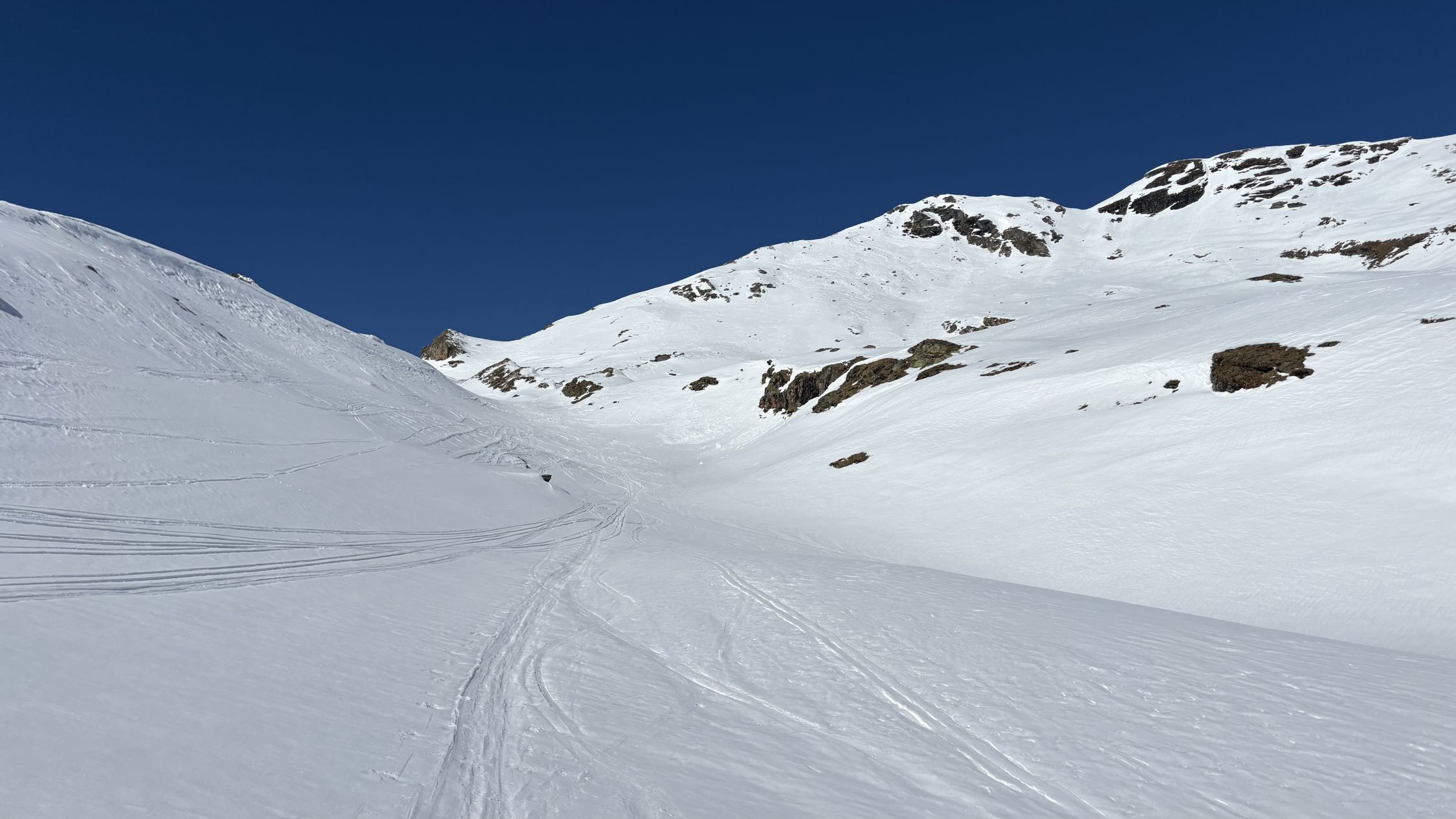 Auf der geschlossenen Piste und dem Alpweg nach hindernislos gute Aufstiegsverhältnis, auch beim Lawinentöbeli.