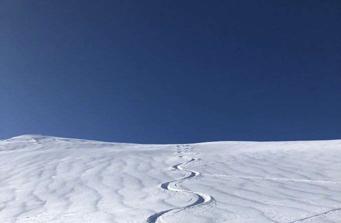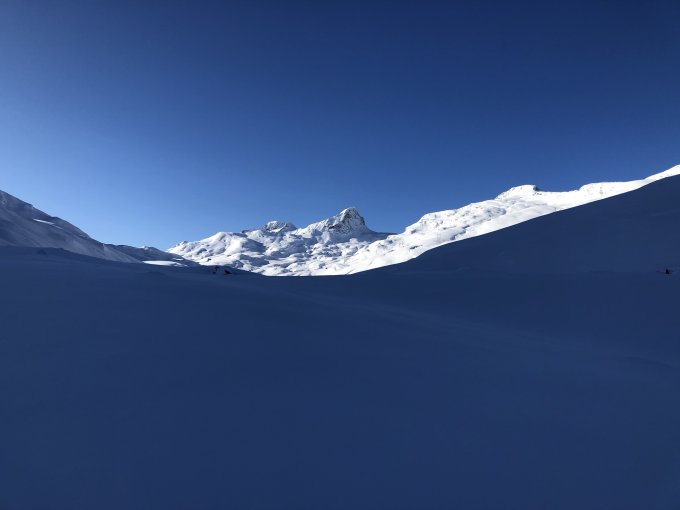 Bis La Motta eher wenig Schnee. Bei der Abfahrt ist Vorsicht geboten. Die vielen Steine und Felsbrocken sind teilweise nur knapp eingeschneit. Oberhalb ca. 2200 m genügend Schnee und heute wunderbarer Pulver. Vorallem der Gipfelhang war ausgezeichnet.