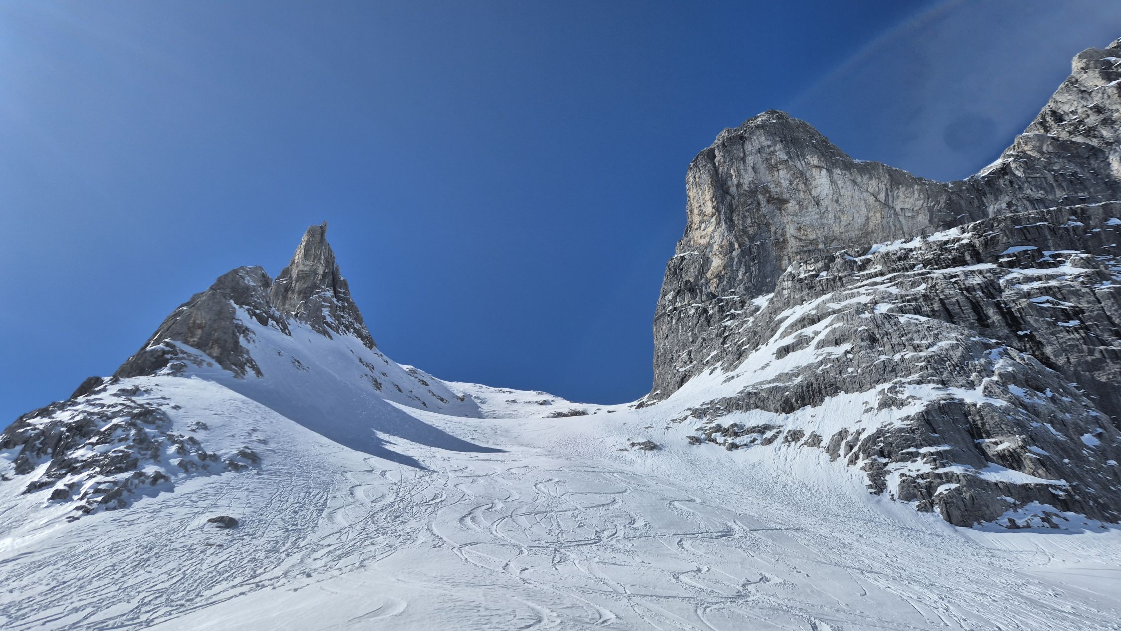 Großer Turm ab Latschau, Abfahrt Sporatobel