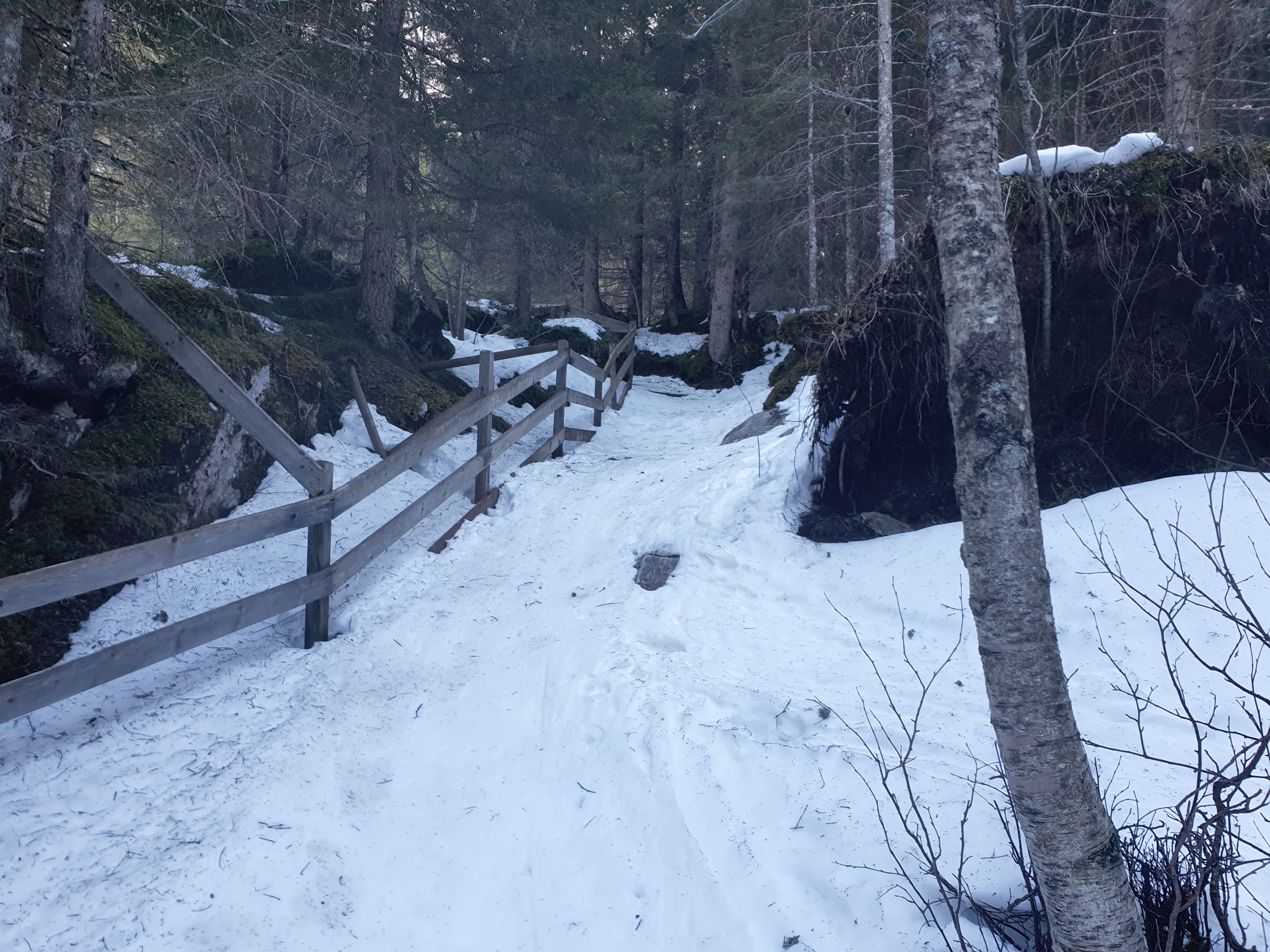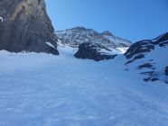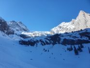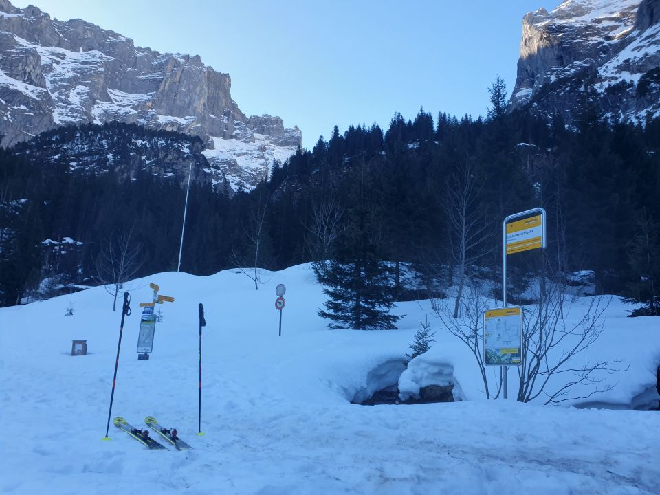Später Start um 09:20 ab Rosenlaui Gletscherschlucht. Die Ski können direkt angeschnallt werden. Es gibt ein paar wenige kurze apere Stellen, bei denen nur einmal die Ski kurz getragen werden müssen.
