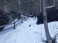 Laut Taxidienst ist die Strasse bis Rosenlaui Gletscherschlucht schneefrei. Da er gestern rund 20 Mal hochgefahren ist, muss er es wohl wissen. Die verlangten Fr. 80.--/ pro Fahrt ab Meiringen erscheinen mir, ohne Rückfahrt, etwas überrissen. So wähle ich wieder einmal das E-Bike um von Meiringen bis zur Schlucht hochzukommen. Oben 3 Autos parkiert, resp. somit heute noch ein paar andere unterwegs.