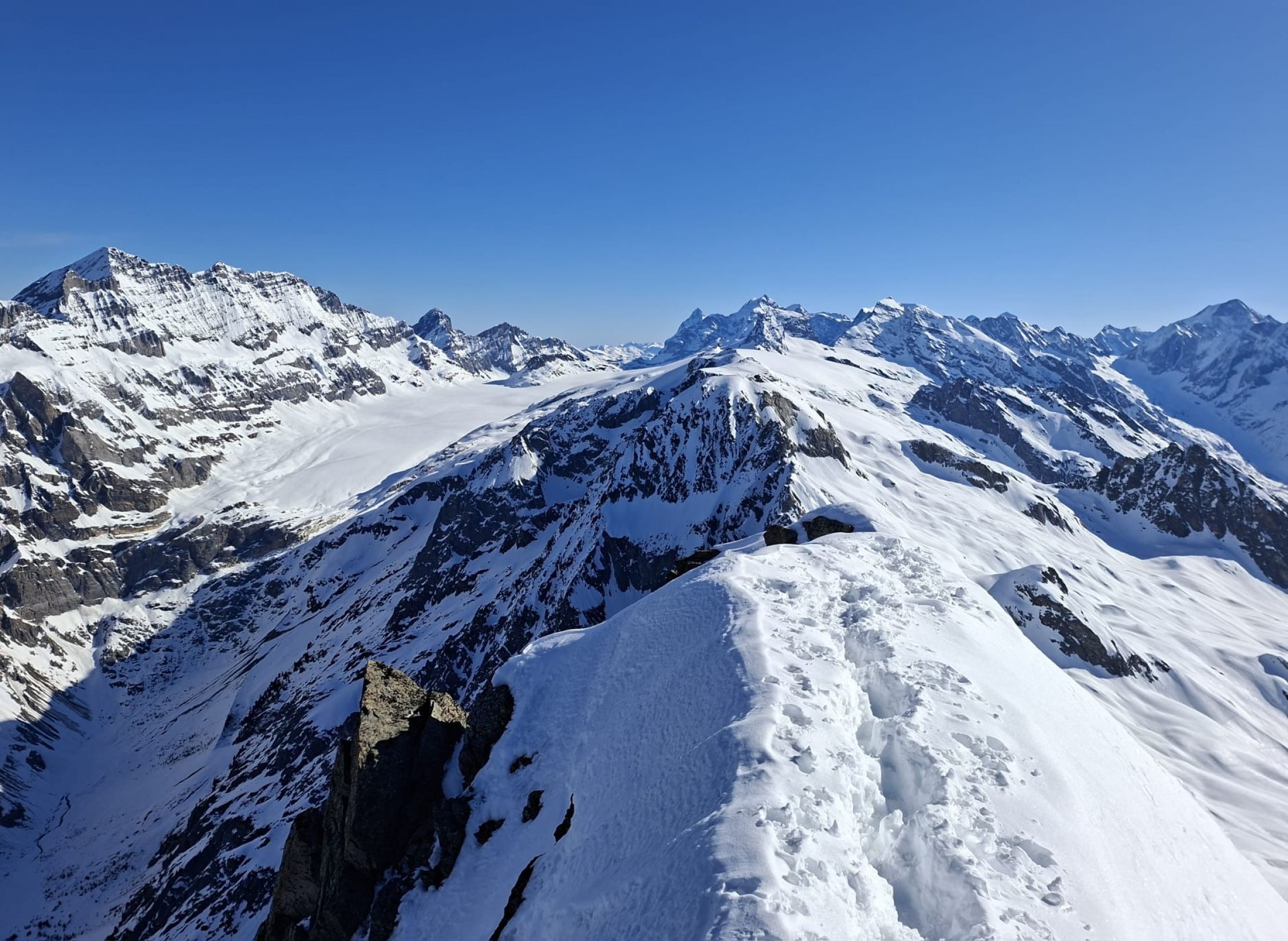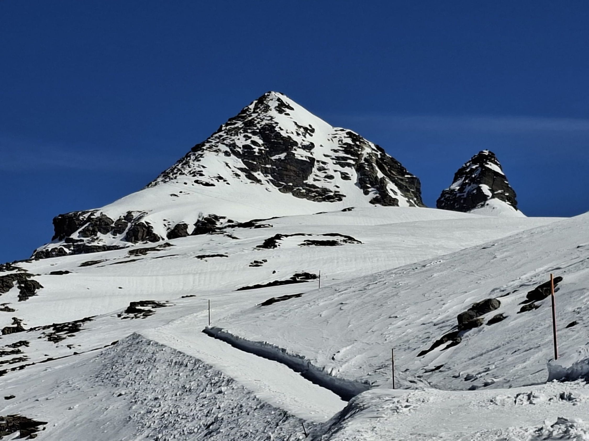 Beste Verhältnisse. Der Aufstieg am Morgen auf harten Spuren, z.T. etwas vereist. Mit den Steigeisen Auf- und Abstieg. Der weitere Abstieg zur Lötschenpasshütte auf tiptop Ratracspur.