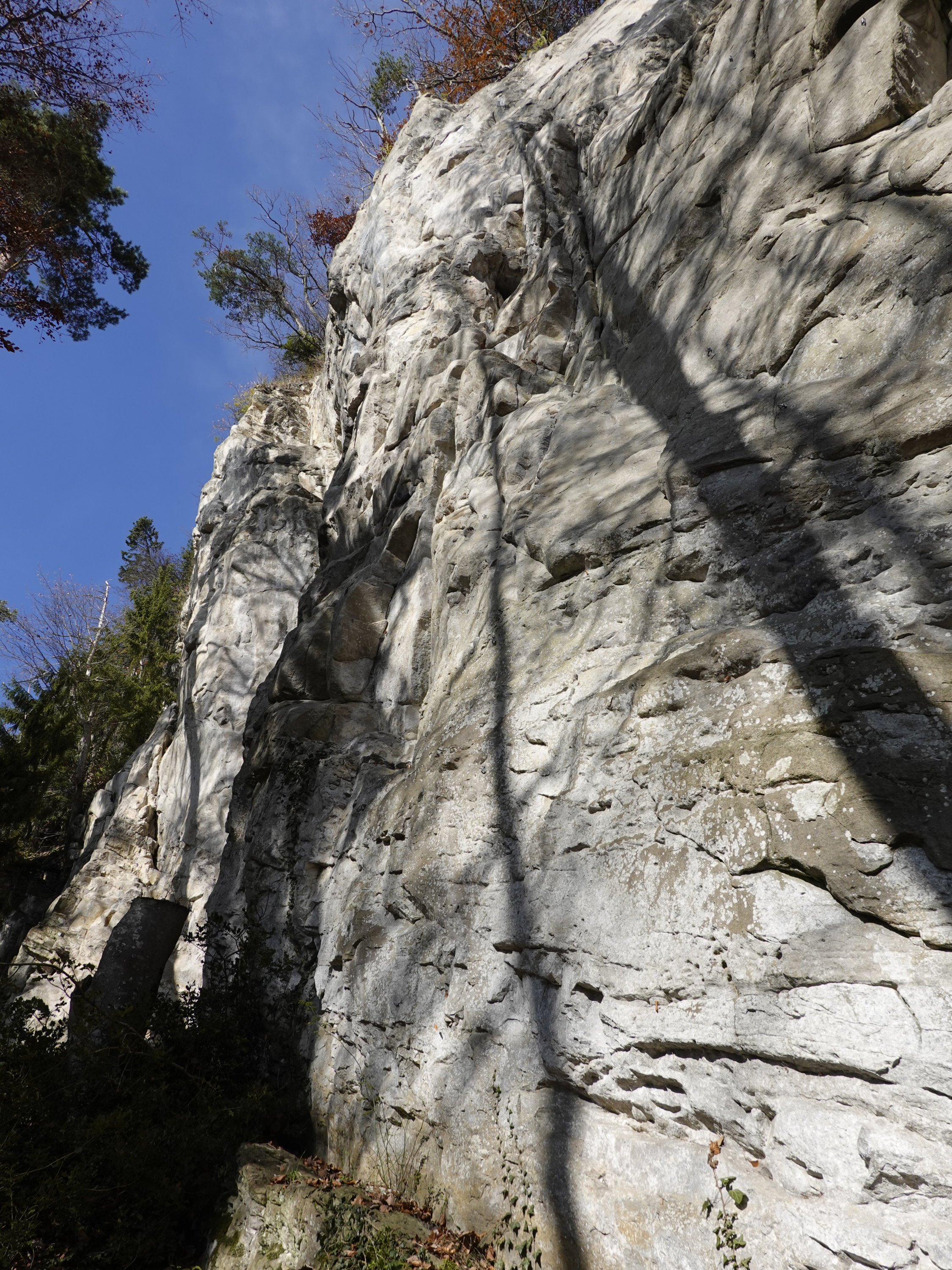 Dank der südexponierten Lage und dem milden Wetter hatten wir heute ausgezeichnete Verhältnisse. Weil kaum mehr Laub an den Bäumen hängt, kommt richtig viel Sonne an die Wand.