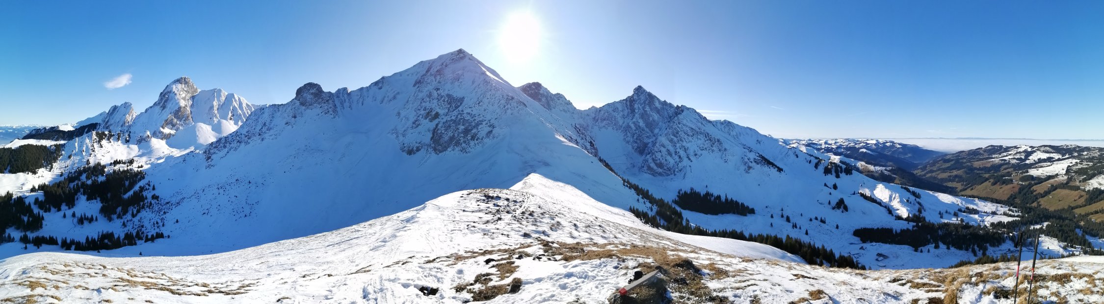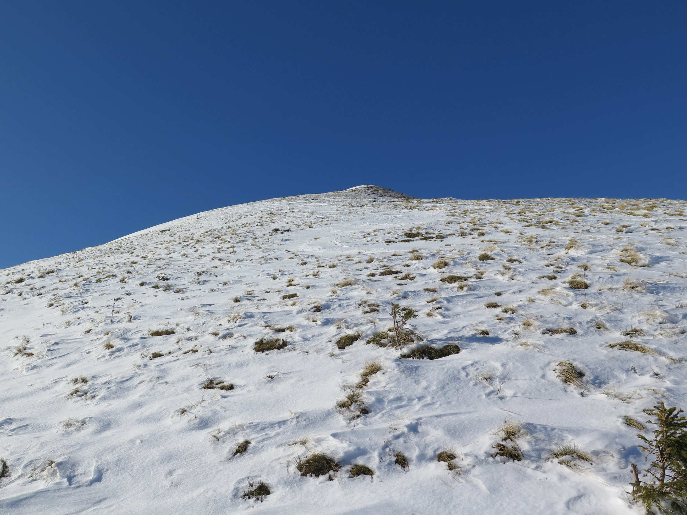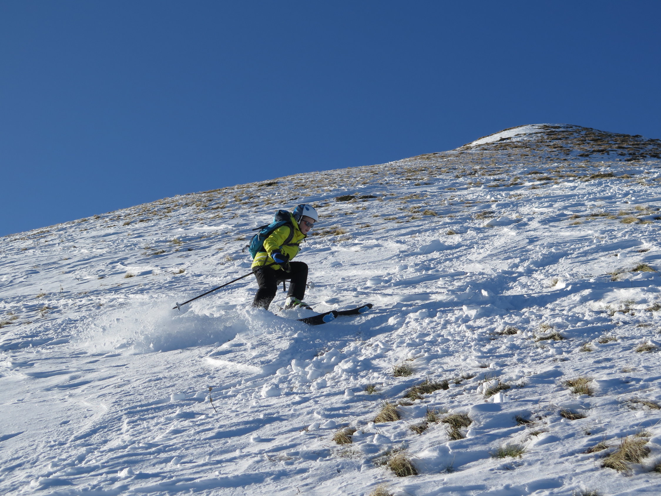 Trotz Schnee mangel war es ein schöner Tag. In Mulden und Rinnen kann man sich durch mogeln. Ausser Unterhalb Gipfel, da hats 50% Schnee und Gras.