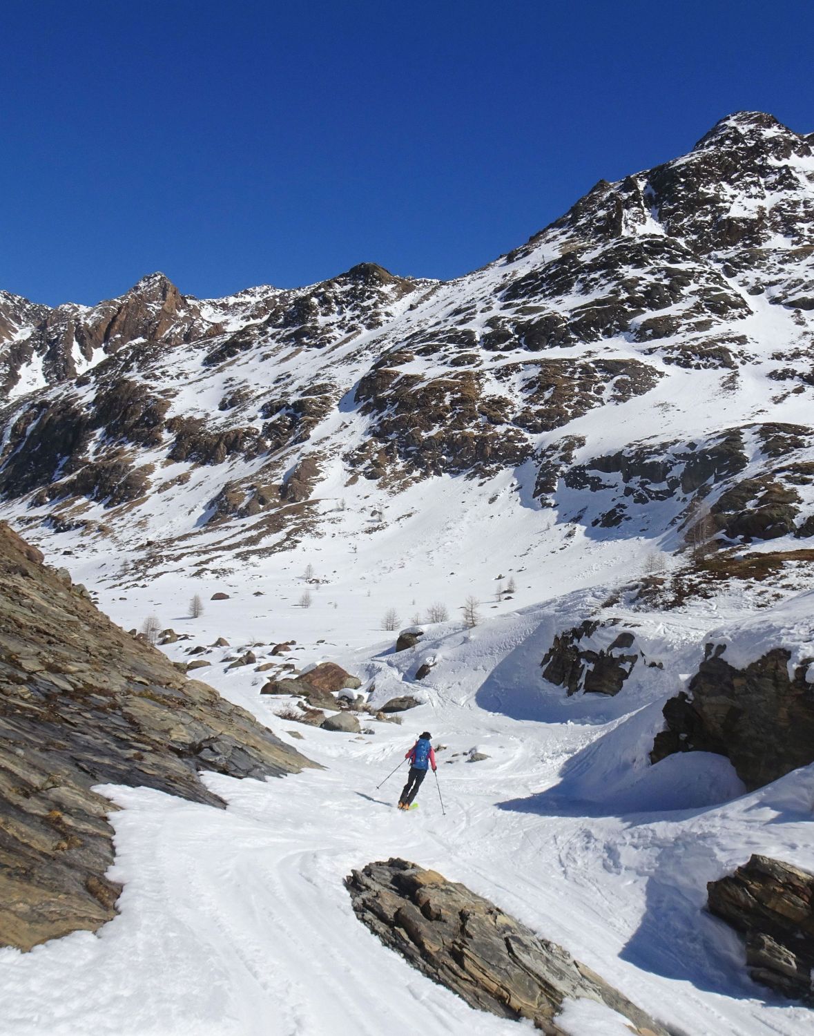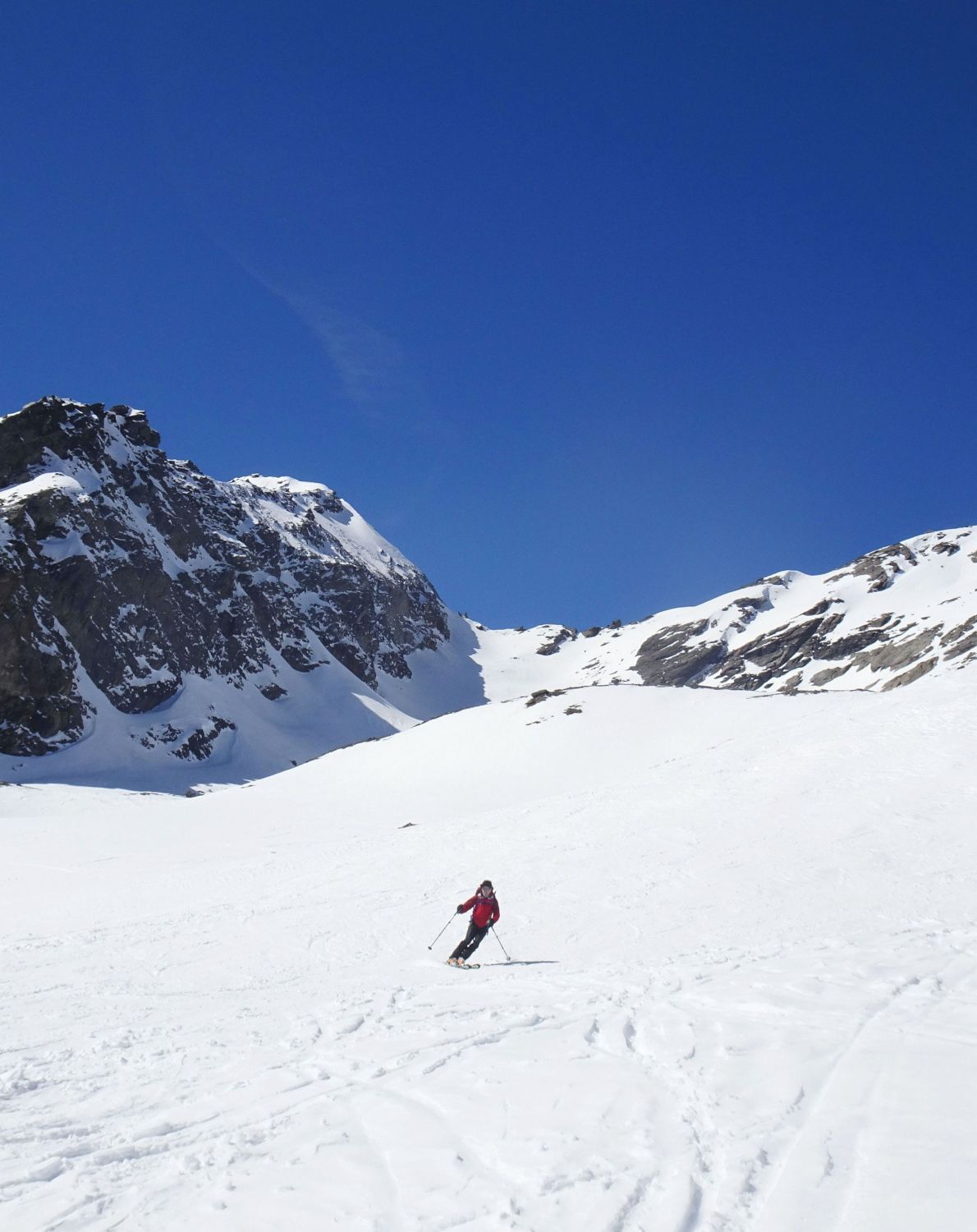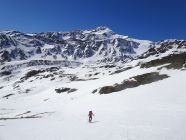 Hüttenweg apert täglich mehr aus, ohne Neuschnee nicht mehr lange mit Ski machbar. Auch oberhalb werden einzelne Passagen mühsamer, wobei die Gipfeltouren ab Hütte durchaus noch länger lohnend sind.