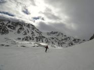 Butzenspitze (Mo.): Lt. Info Hüttenwirt nur noch Anstieg durch das Langtal üblich, Route Butzental nicht mehr machbar. Gipfelaufstieg zu Fuß, da steil und steinig. Hatte Trittschnee, bei harten Verhältnissen sind Steigeisen hier aber sicher nicht verkehrt. Aussicht ähnlich wie bei der Madritschspitze, Tour aber deutlich weniger begangen und länger. Gleiche Abfahrtszeit wie tags zuvor, Schnee aber bereits sehr weich, weniger kompakt und unten raus schon teils sumpfig.