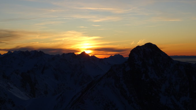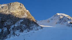 Abfahrt Nordflanke ist jetzt ziemlich vercharret aber es ist trotzdem gut zu Fahren und hat von Pulverschnee über Presspulver und Bruchharsch von allen Schneearten ein bisschen im Gepäck