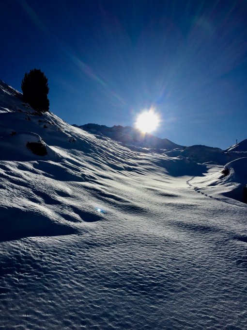 Ab 1500 Meter hat es erstaunlich viel Schnee in der Region. Top Pulverschnee vom Start bis zum Gipfel. Ein einziger Steinkontakt und das zwar ein markanter. Habe einen Stein auf 1600 Meter Höhe nicht gesehen.