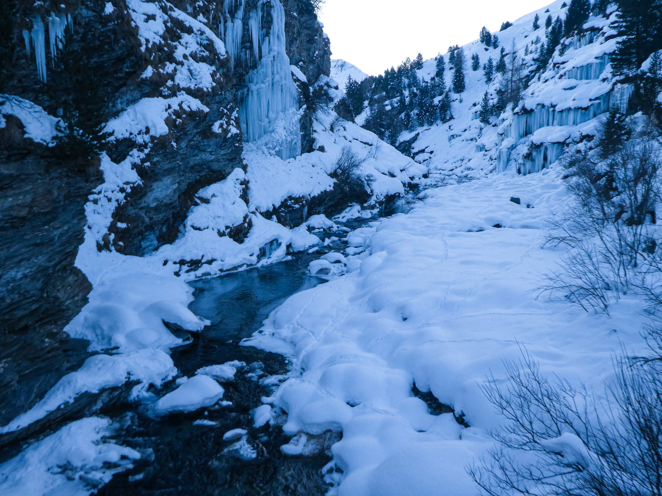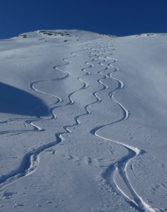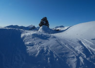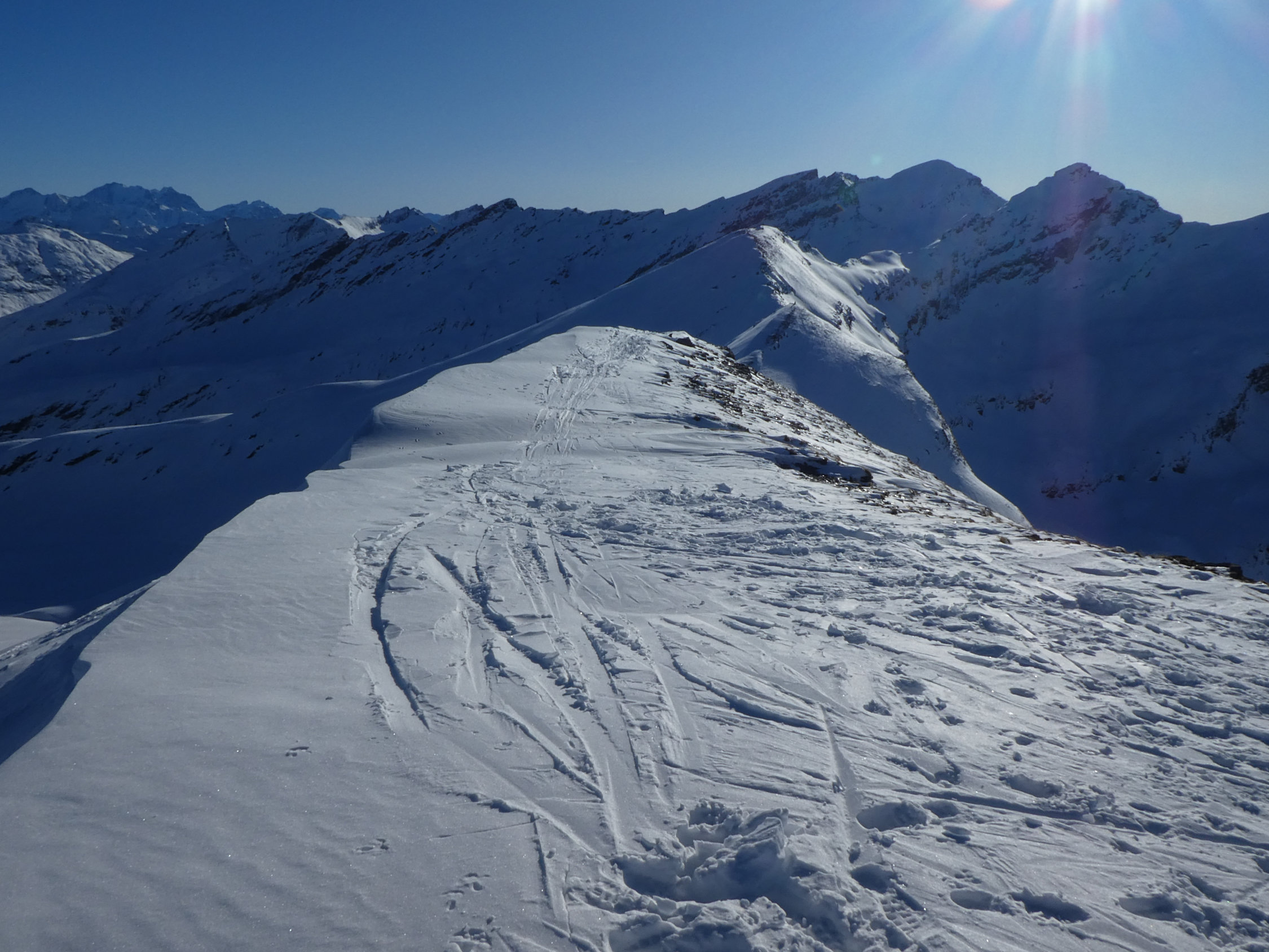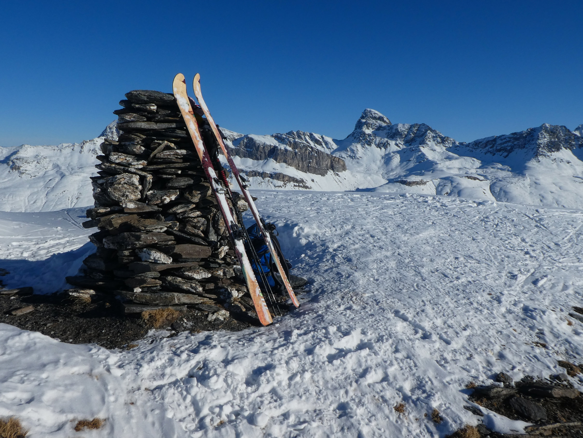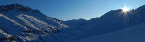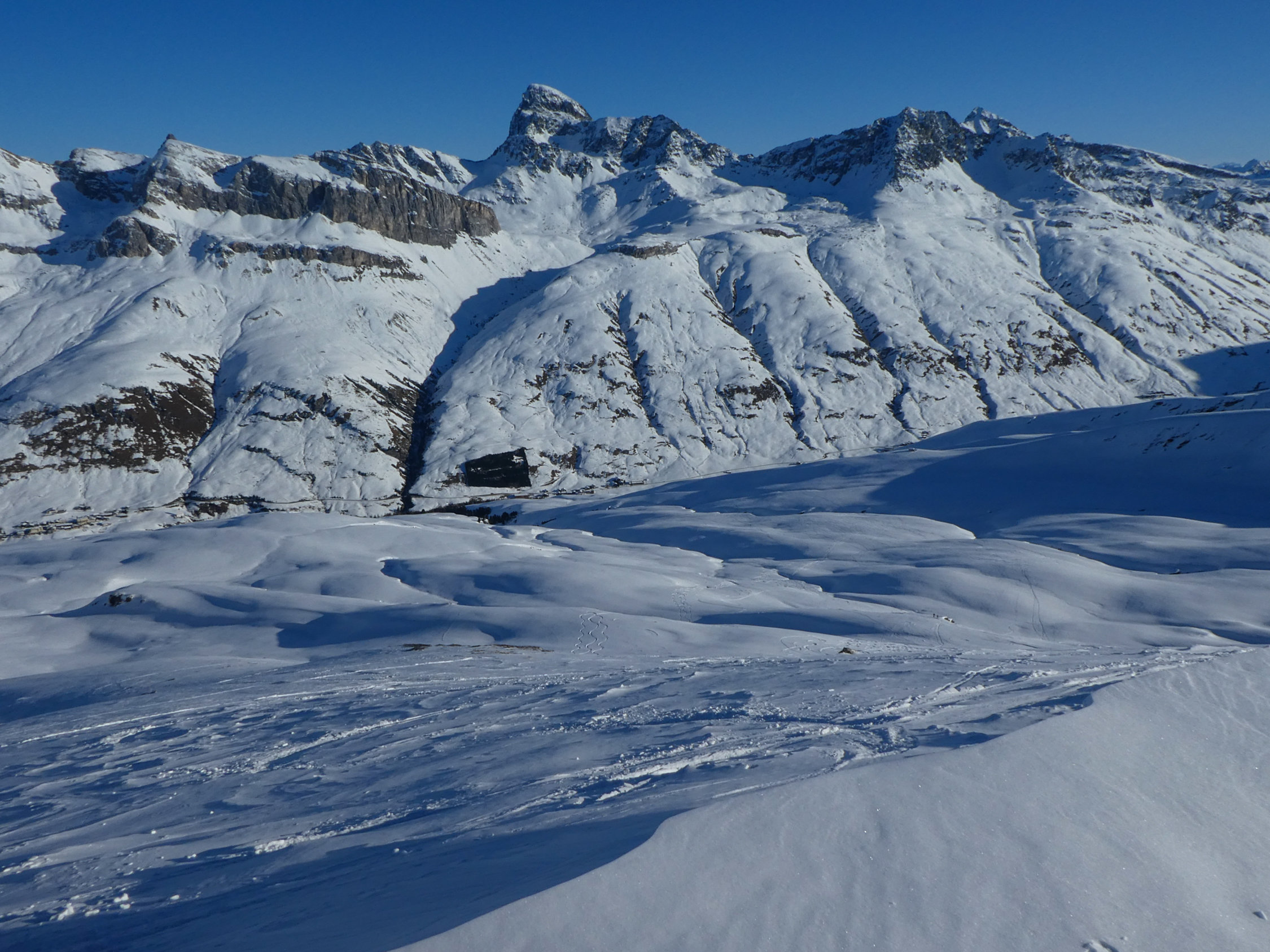 Klirrende Kälte bei Tagesanbruch im Avers. Bereits ab Start der Tour beim Averser Rhein sehr gut eingeschneit mit kompakter Unterlage. Nur in der Gipfelflanke ein wenig verblasen und ein paar Steine, die herausschauen. Die Abfahrt war ein Genuss - Pulver von A bis Z. Den Steinen im Gipfelbereich kann man gut ausweichen.