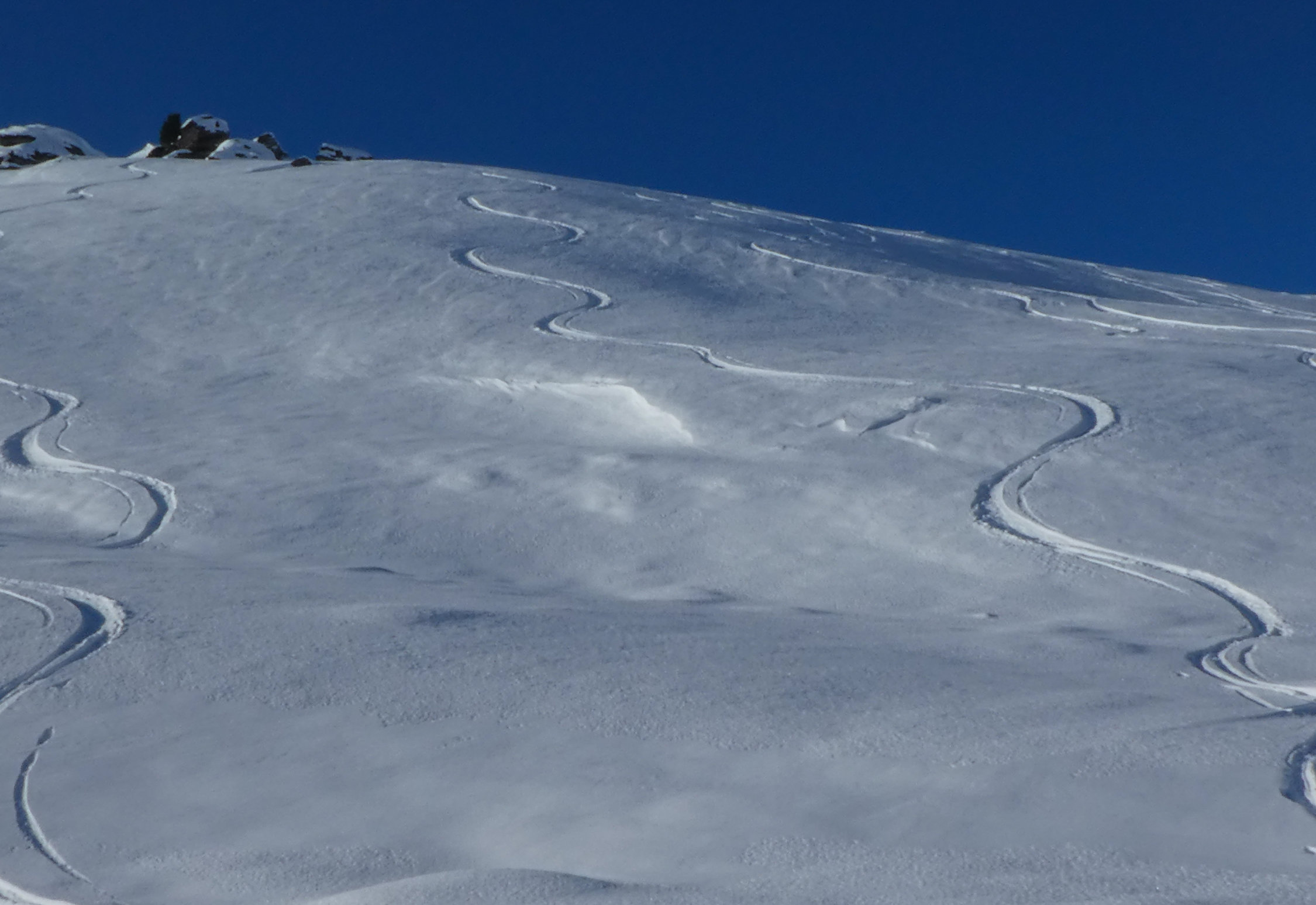 Bin früh abgefahren und kann nicht beurteilen, wie stark die Sonne im weiteren Tagesverlauf auf die Schneedecke eingewirkt hat. Ich denke aber, der Powder dürfte sich über weite Strecken gehalten haben.