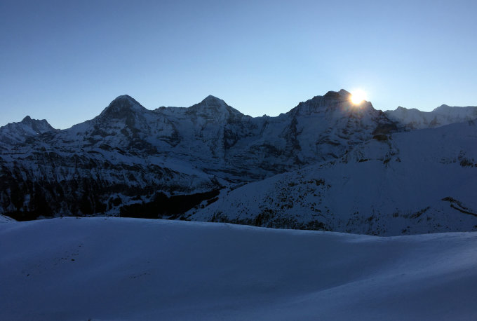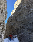 Mit den Skis bis zum Einstieg. Die steileren Felspassagen trocken, auf den grösseren Tritten und Bändern Schnee. Alles mit Steigeisen geklettert, Pickel praktisch nicht gebraucht (geht gut ohne).
