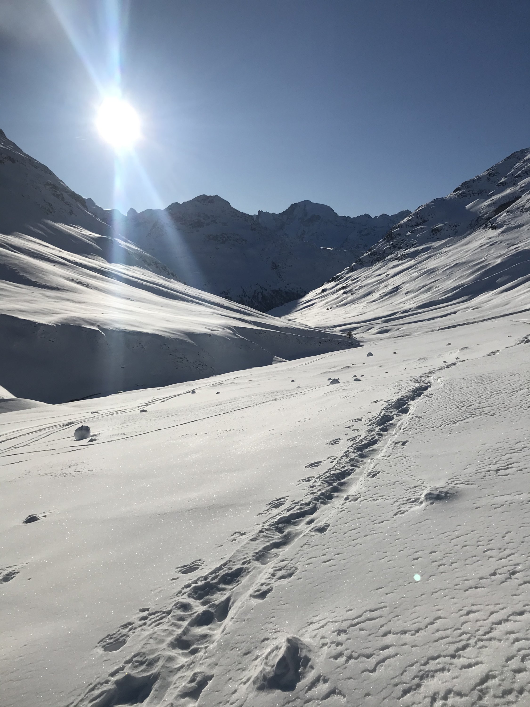 Nordhänge/Aufstieg Val da Fain bleibt gut, Abfahrt Val Minor je nach Tageszeit kritisch.