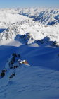 Abstieg/Abfahrt über Porta d'Es-cha zur Es-cha Hütte: Auf der Südseite der Porta d'Es-cha lag im oberen Teil genug Schnee für einen problemlosen Fussabstieg (Ski am Rucksack), im unteren Teil schauten die Ketten aus dem Schnee. Nachher über P.2814 und P.2740 abgefahren; immer schön den Tälchen nach, dort hatte es weniger Steine.