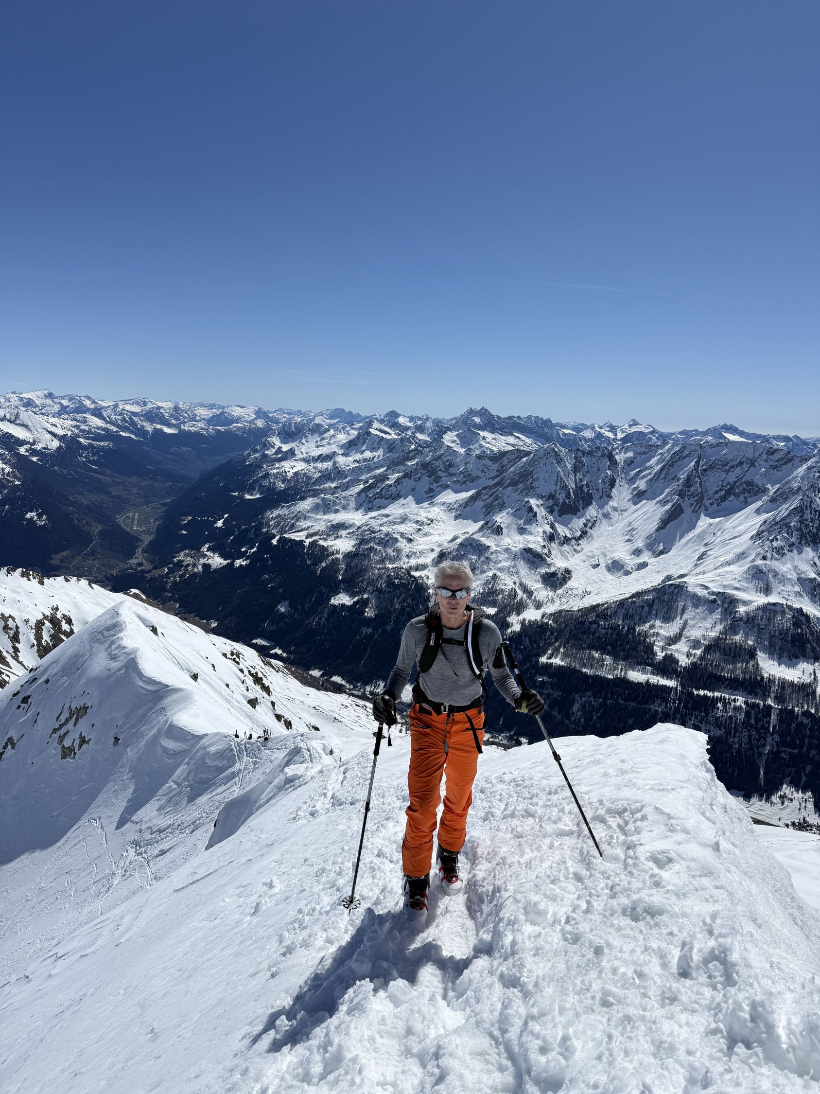 Schnee konnte auch in Realp in der Nacht gefrieren. Start Realp 08.30, ab Dampflokdepot angefellt. Viel Schnee im Witenwasserental. Schnelle Spur durch das Tal, Hang hinauf zur Lücke ging gut ohne Harscheisen, auch die letzten 10 Spitzkehren.