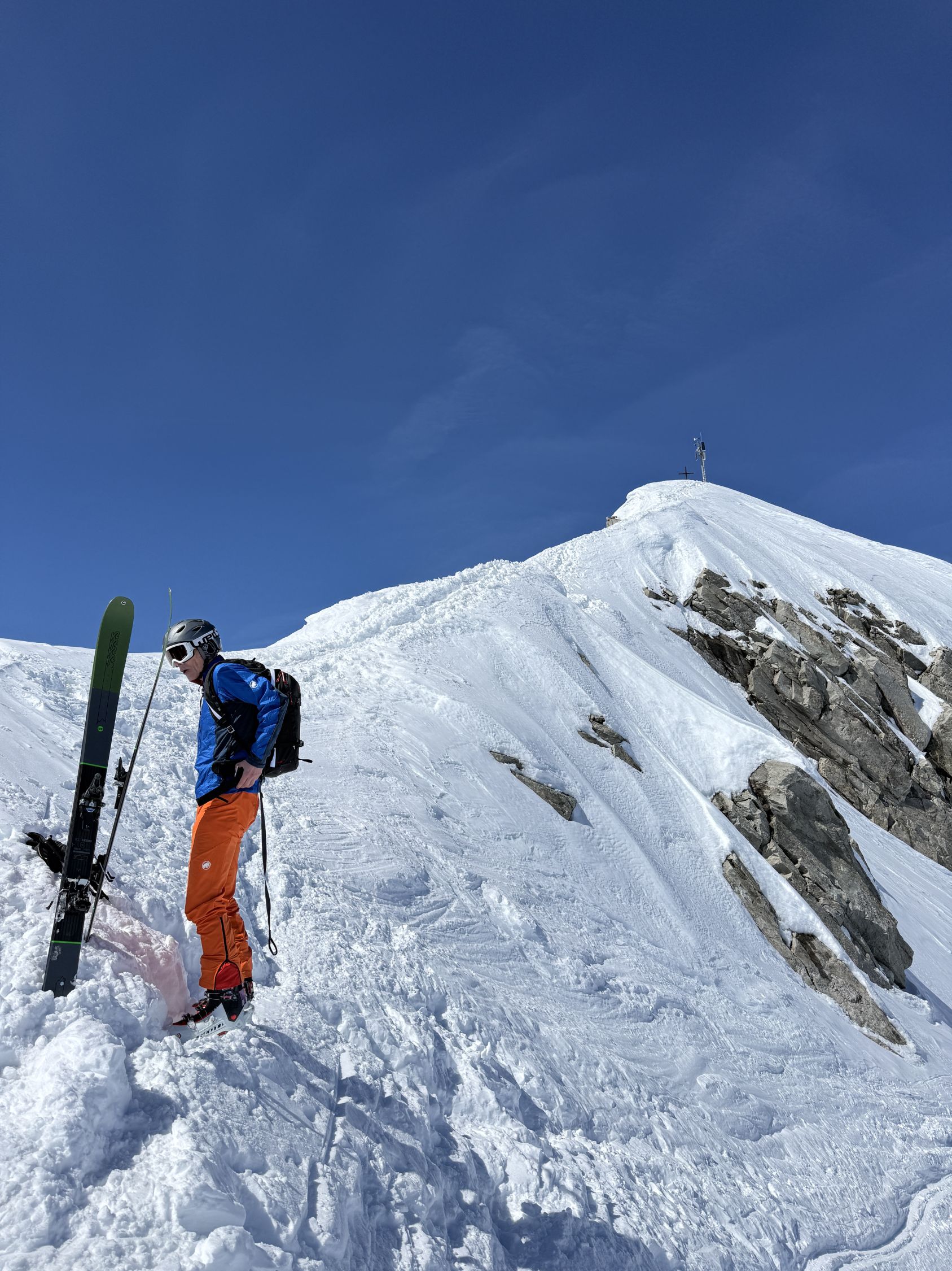Ostseite bis zum Skidepot schön aufgesulzt, am Schluss Presspulver. Ab Skidepot in 5 min in gutem Trittschnee zum Glpfel,