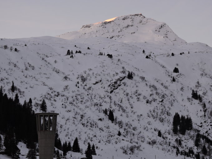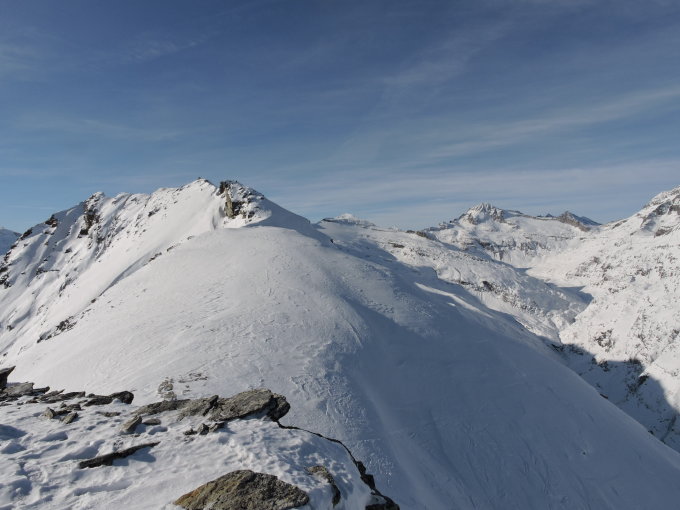 So ab ca. 2350 waren wir im Windschatten vom Marscholhorn. Auf dem Gipfel fast Windstill.