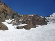 Beim Abstieg verlangten nur die 3 kurzen Stellen ein Klettern gegen den Schnee, sonst zügiger Abstieg zum Skidepot.