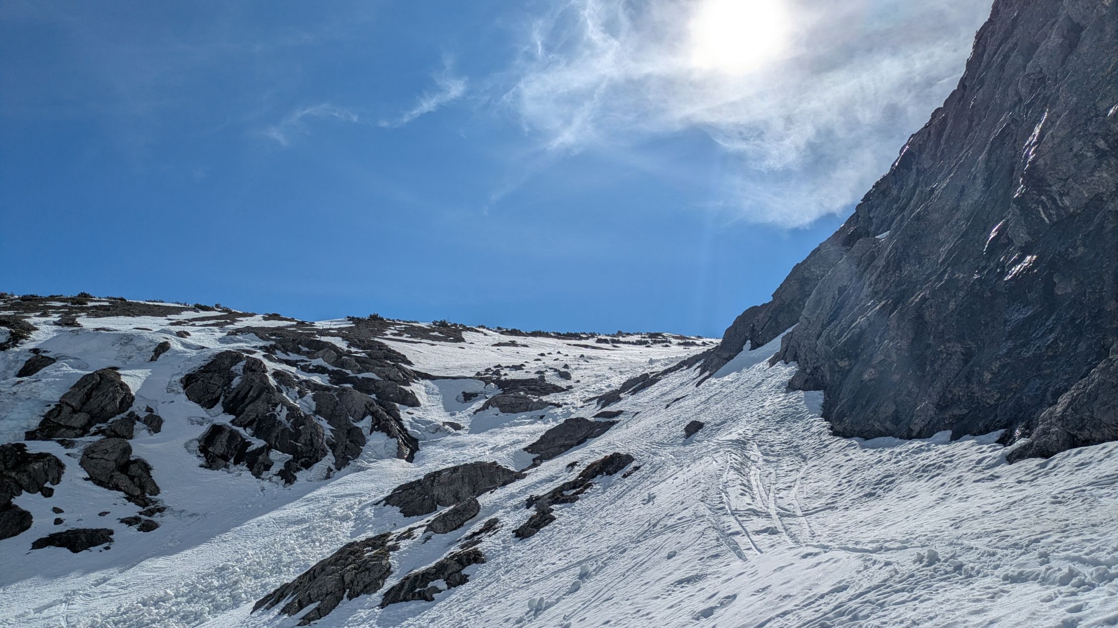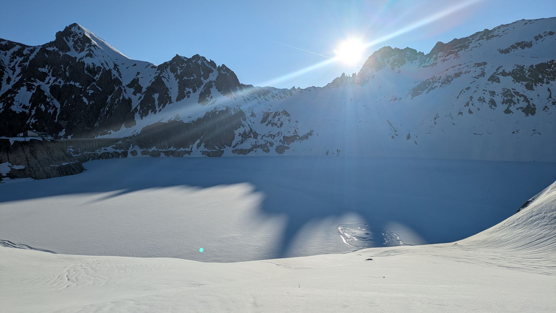 Straße nach Schattenlagant gesperrt, auch für Radfahrer! Schnee ab Schattenlagant. Boser Tritt hoch ein Stück zu Fuß, rinter ging abrutschen. Nachts ab Lüner See gut abgestrahlt.