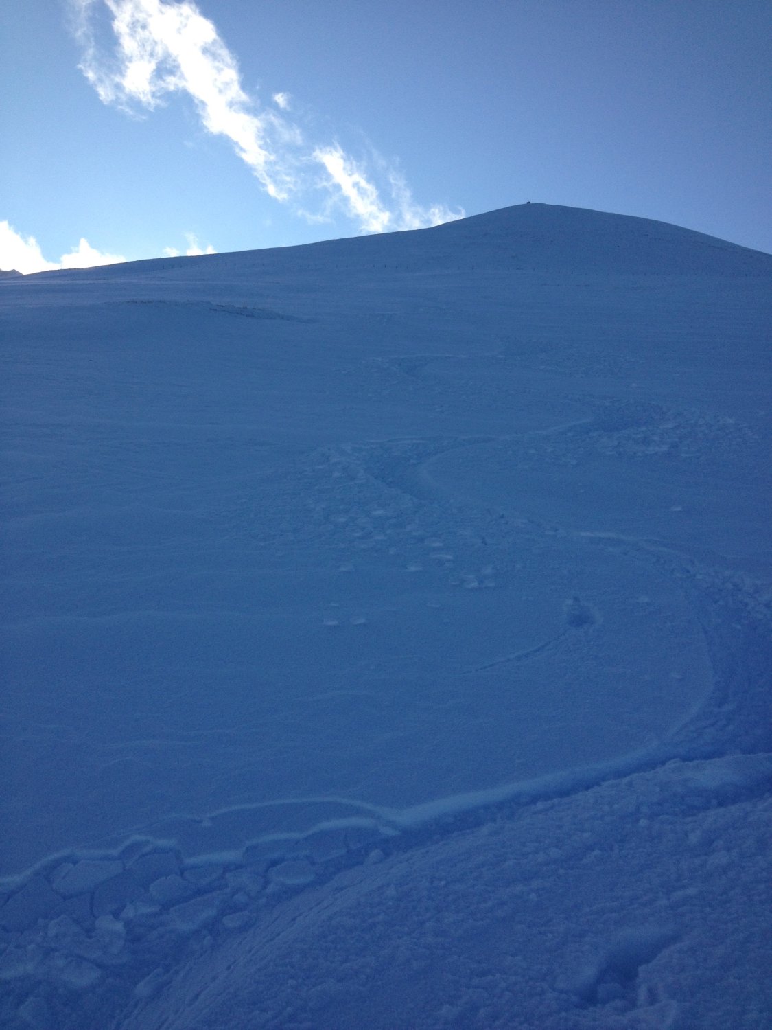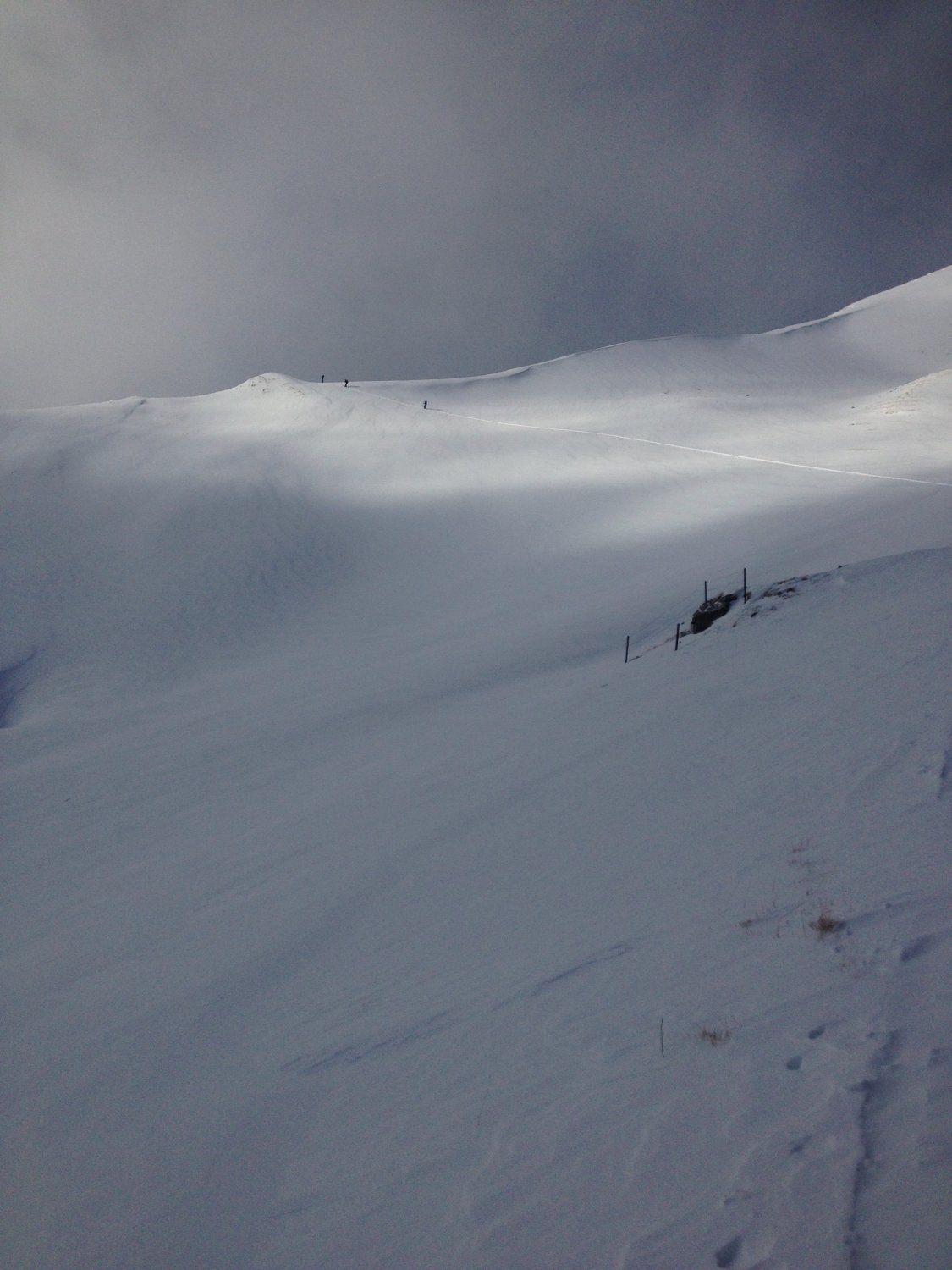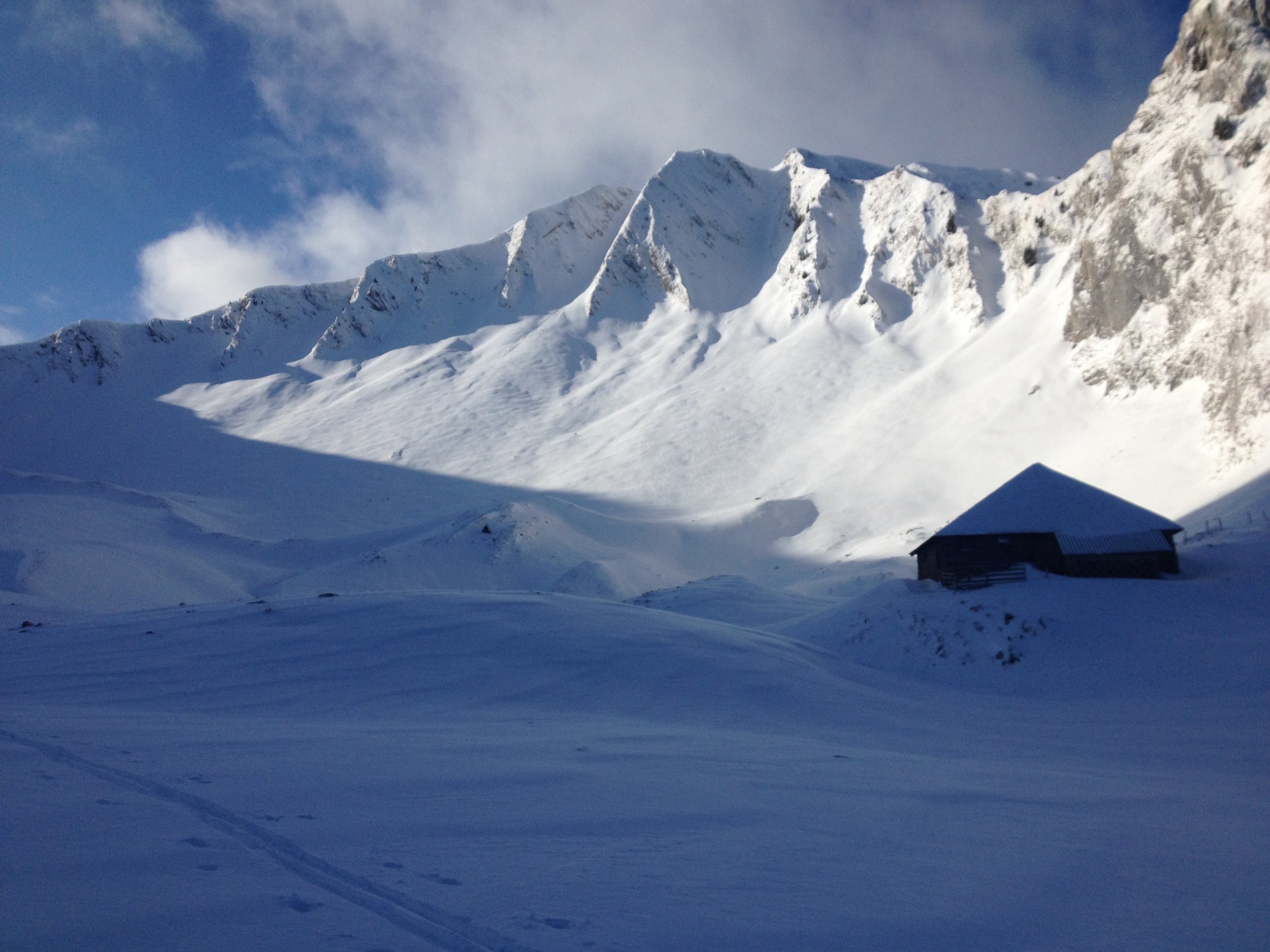 Beim Start und bei der Rückkehr -6°, aber unterwegs meist sehr kalt mit dem starken Südwestwind. Schöner Pulverschnee mit guter Unterlage, bei der Gantrischhütte 11cm Neuschnee, gesamt 40cm. Im Gipfelbereich je nach Windverfrachtungen...Es bräuchte noch etwas mehr Schnee, aber bitte ohne Wind...Die letzten Meter zum Morgetepass wurden breit gespurt von einem Splitboarderprofi, danke vielmals.