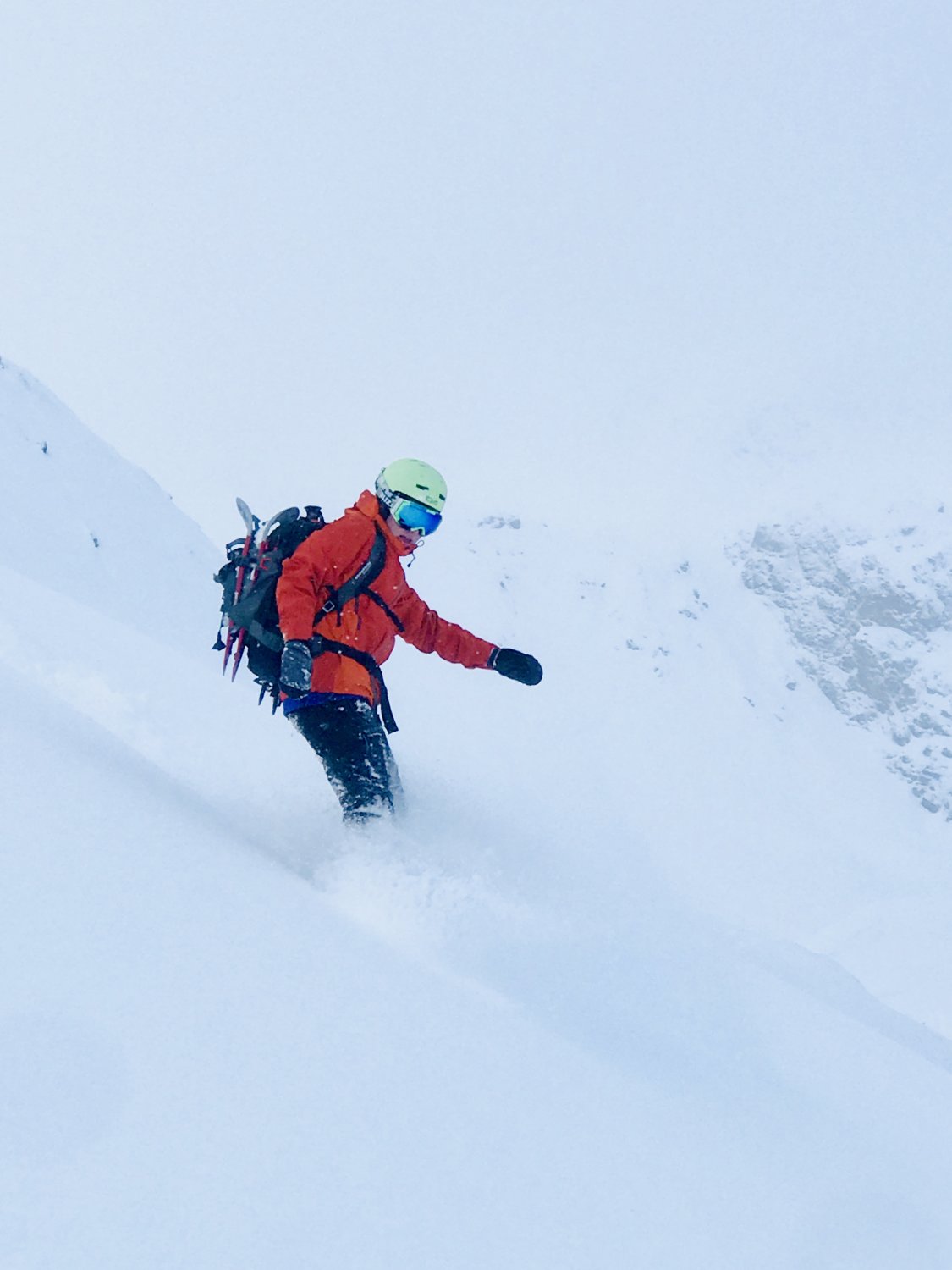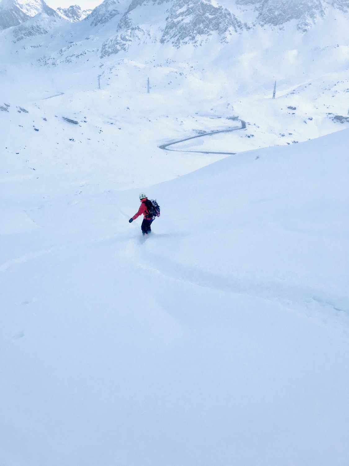 15-25cm pulverauflage auf tragender unterlage. Bäche noch offen. Grate und kämme waren abgeblasen und lockere pulverauflage, heisst reichten grad aus um steinkontakt zu vermeiden. Sonst ideale Bedingungen.