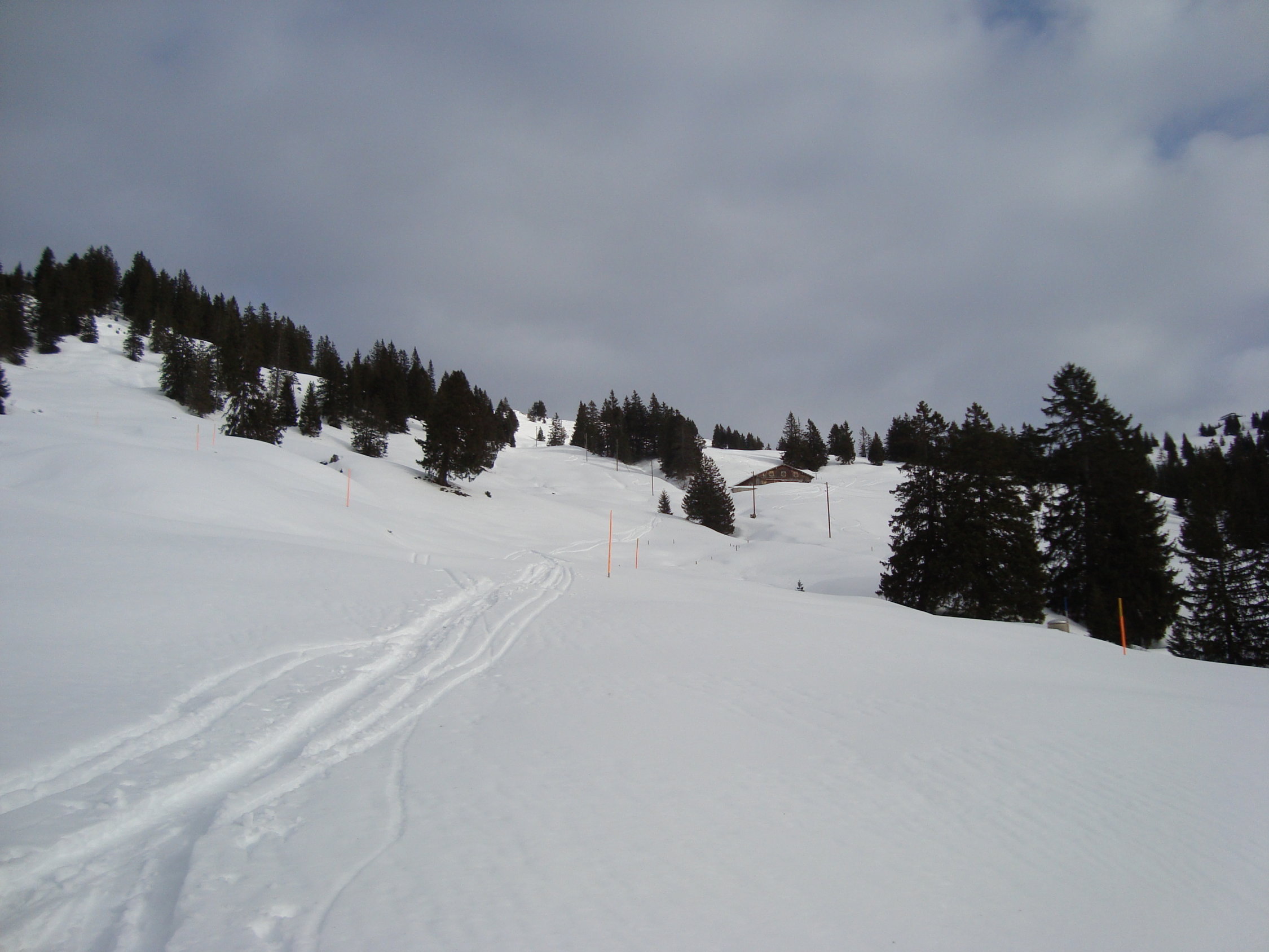 Laucherenstöckli (1753m): Von Illgau der Abfahrtspiste entlang bis Gipfel