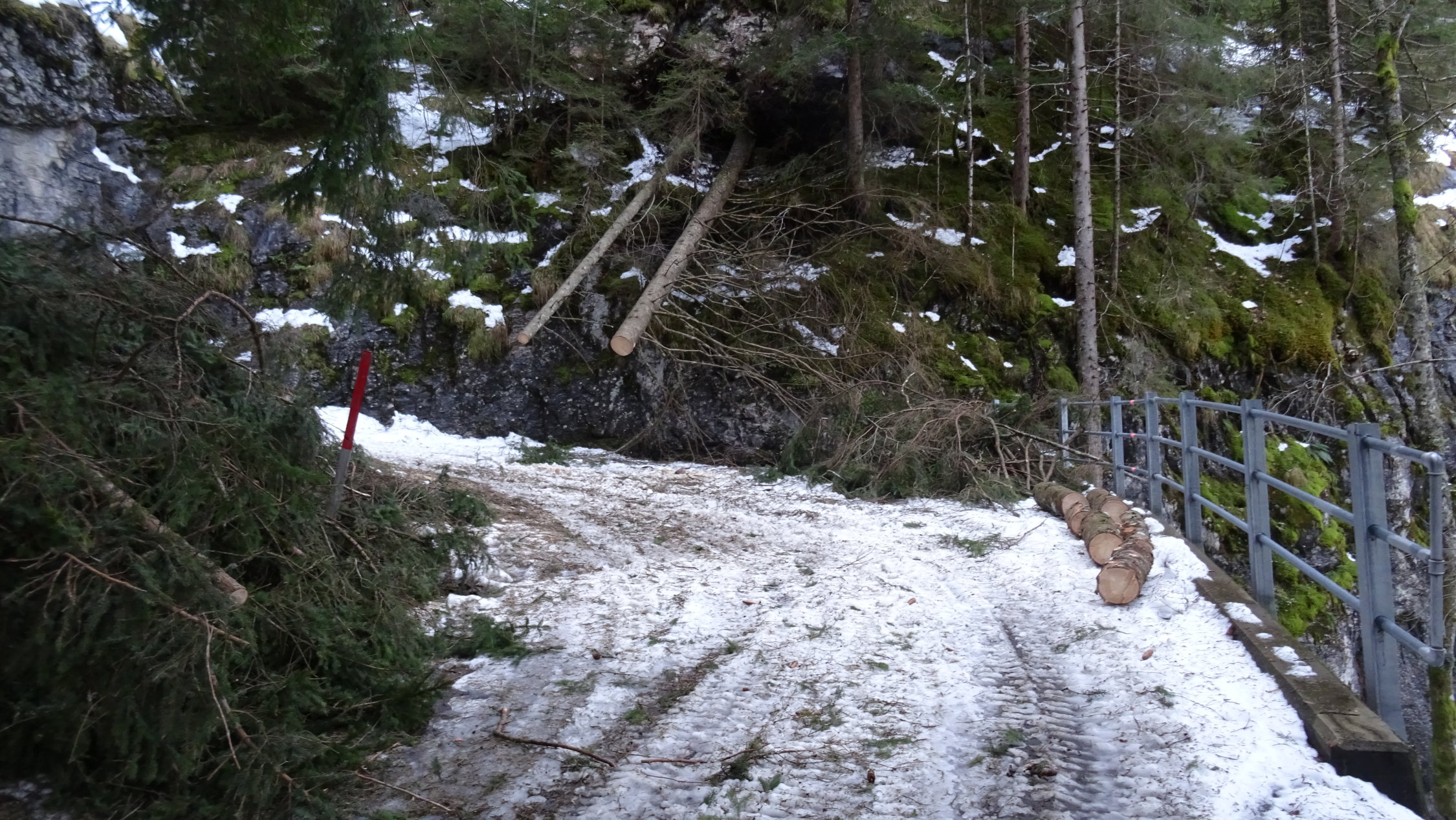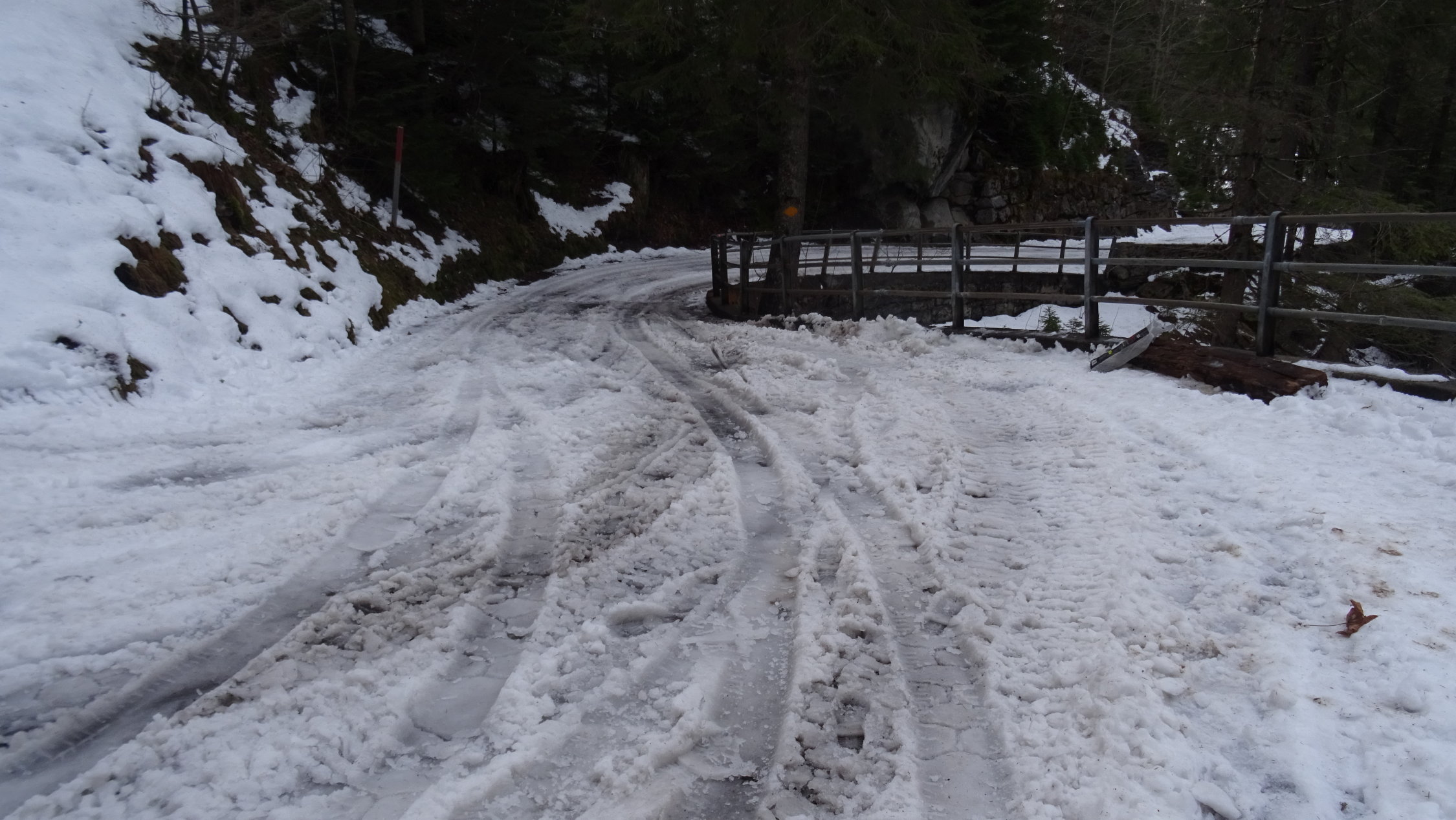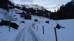 Auf der Strasse zur Griesalp hat es bald Apere lücken da Tauwetter und Föhn angesagt ist