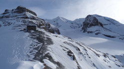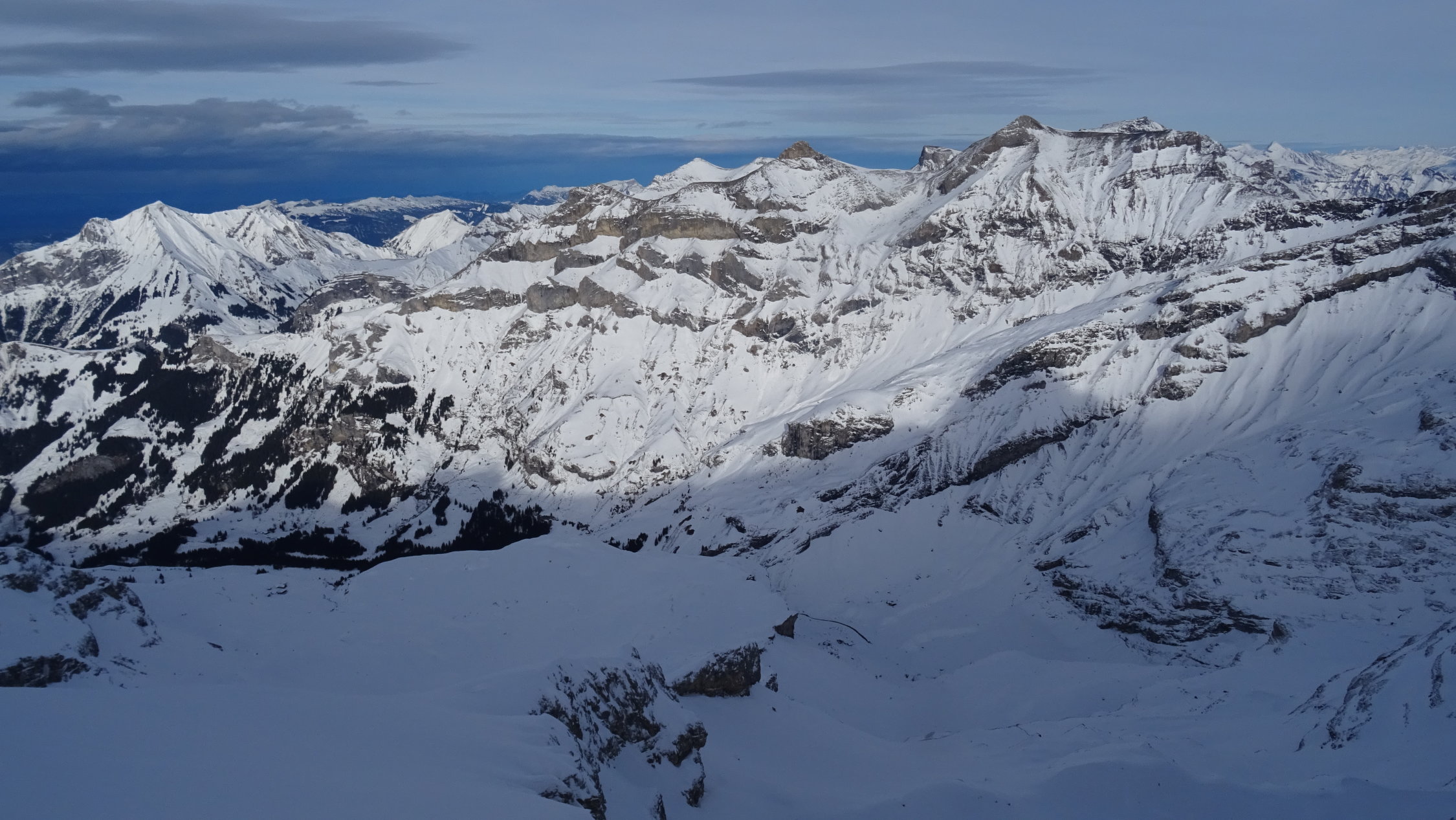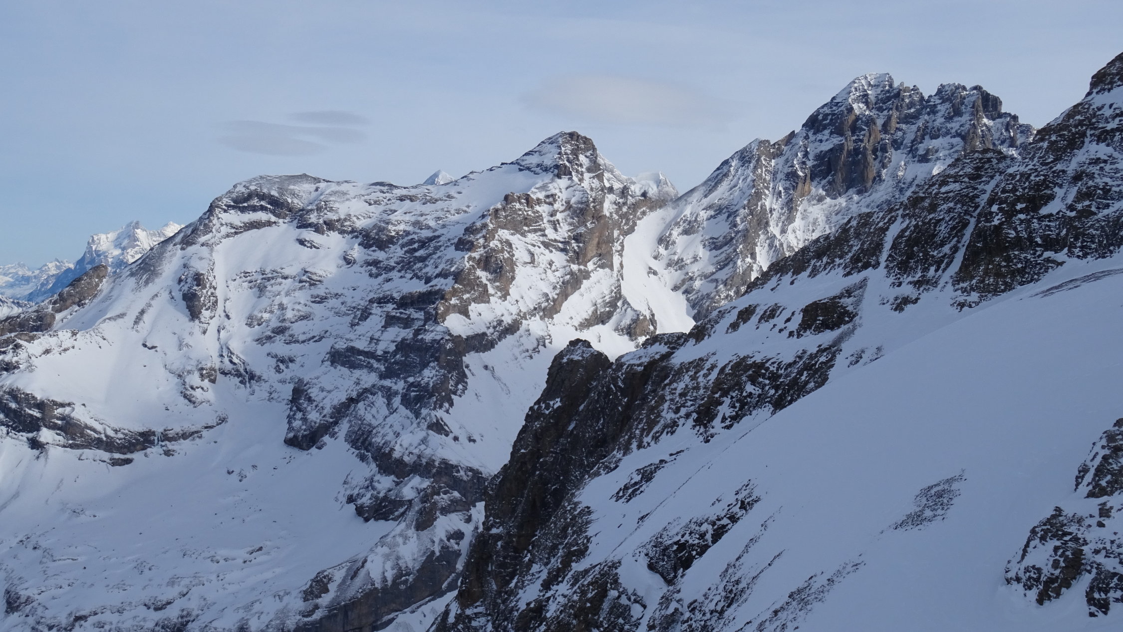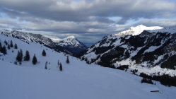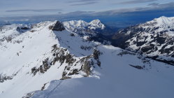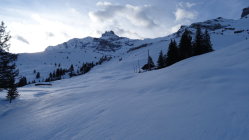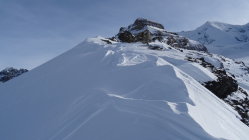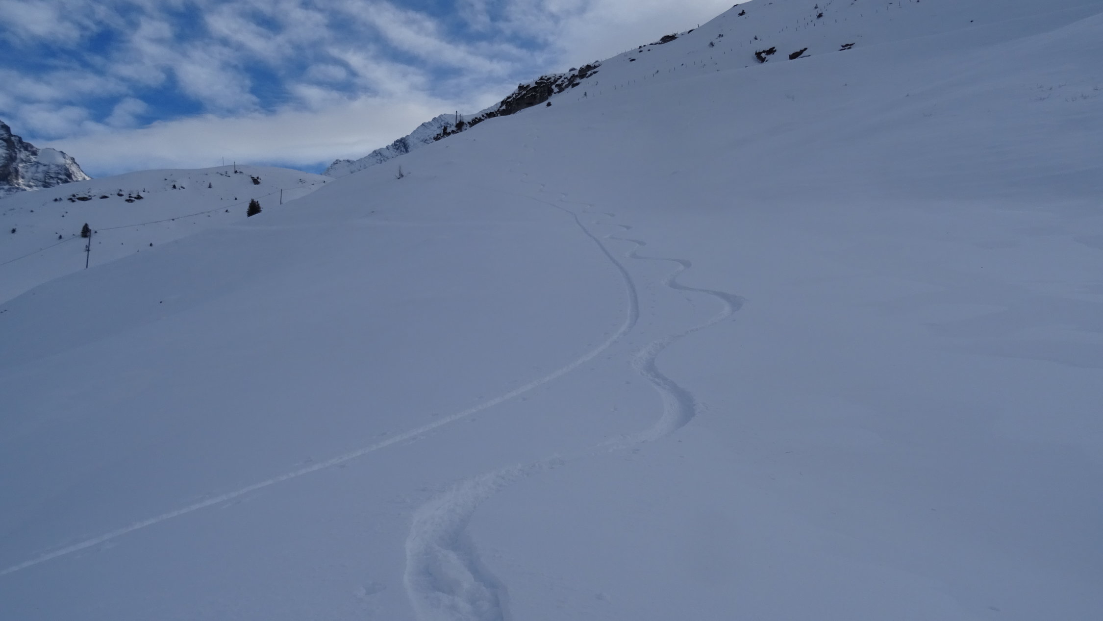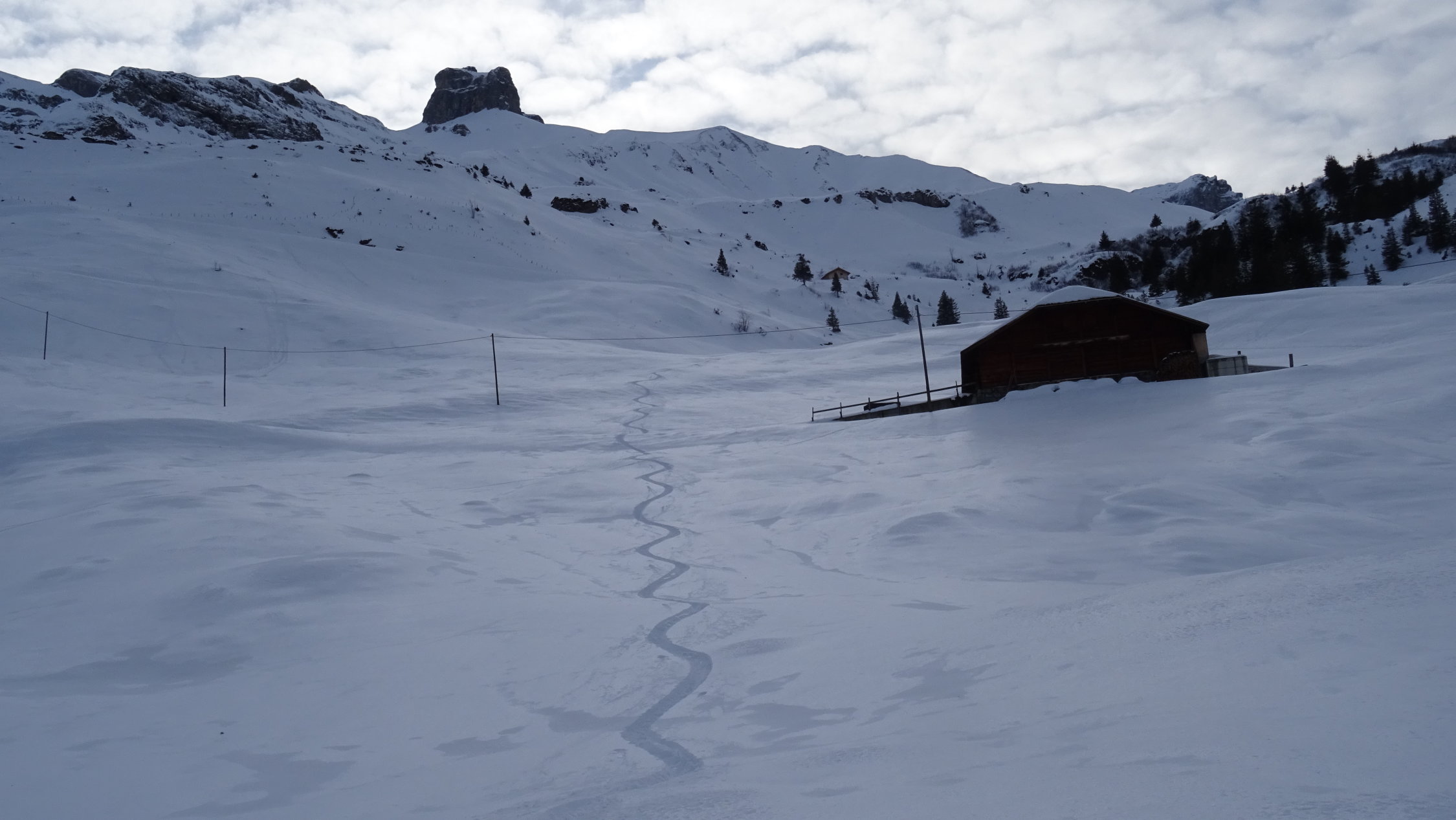 Oberhalb 1800m hat es 40 bis 80cm Schnee der sehr unterschiedlich ist mal schöner Pulverschnee dann wieder Winddeckel brechend und teilweise tragend