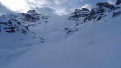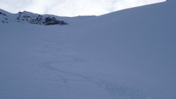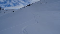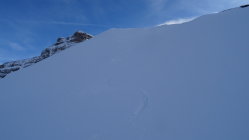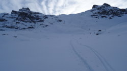 die obersten 300hm bin ich aus Sicherheitsgründen wegen der erheblichen Lawinengefahr über einen ca 100m breiten markanten Lawinenkegel aufgestiegen.
