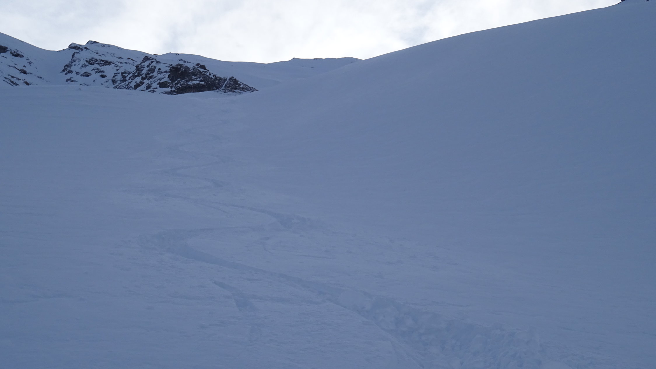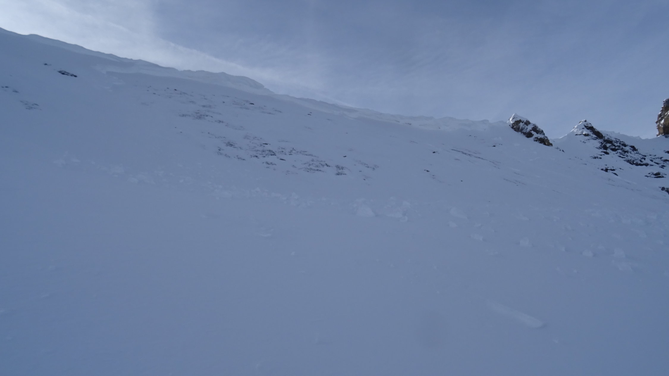 diese Lawine ist übrigens 500Hm lang diese Woche Spontan abgegangen und die Abrisskannte ganz am Grat oben.(siehe Foto)
