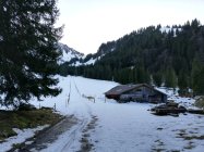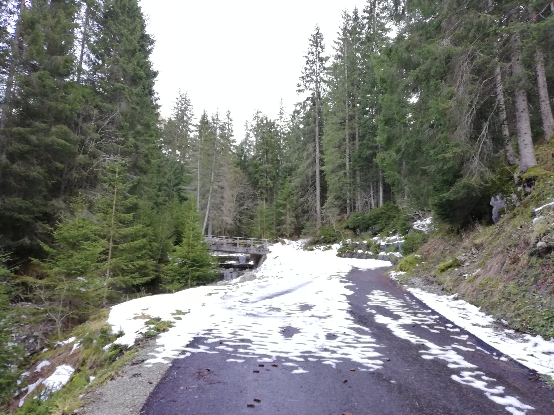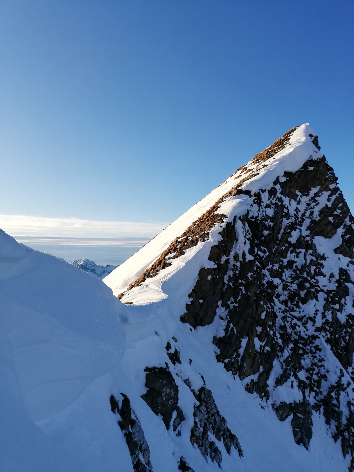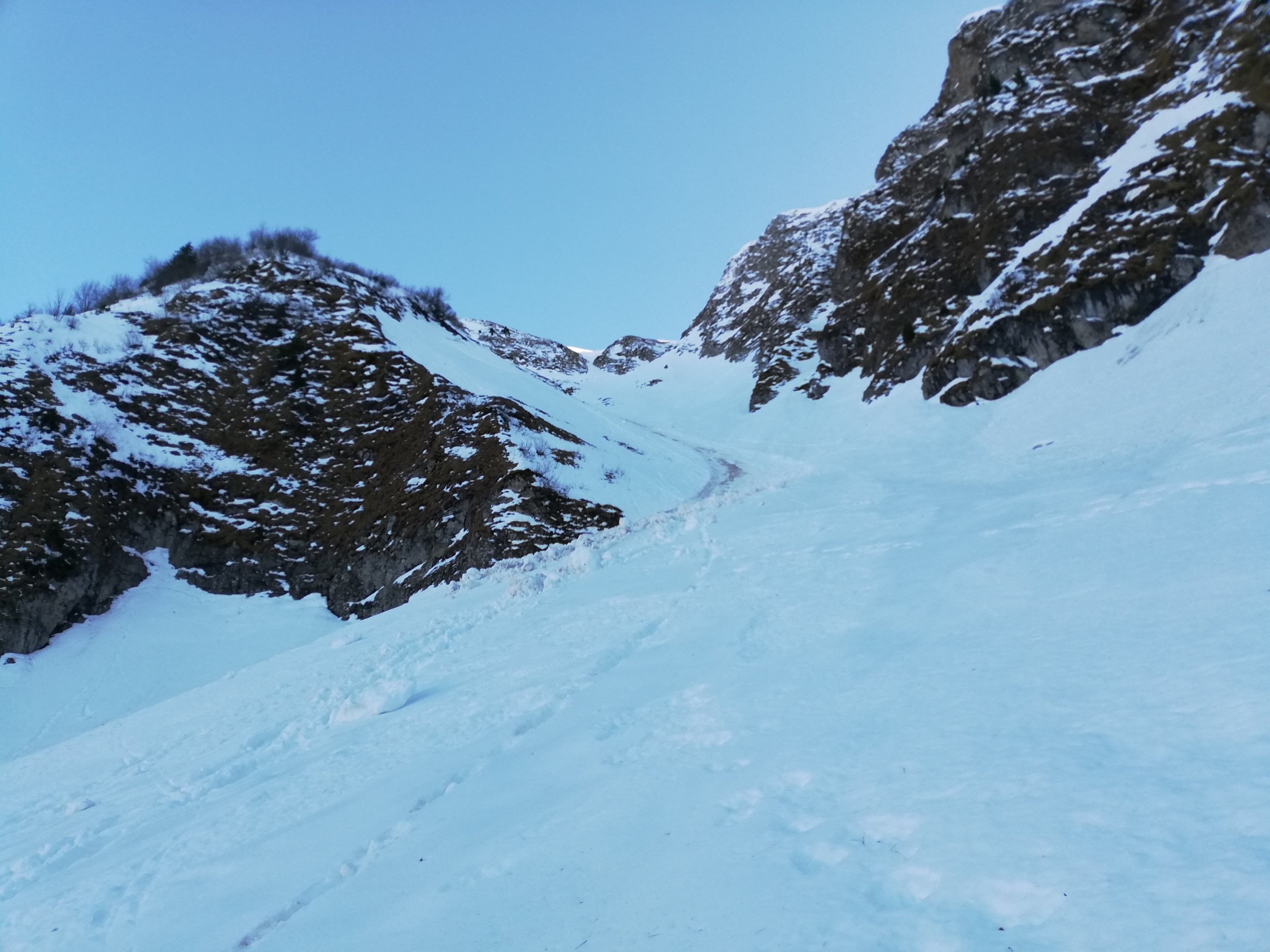 Bis 1250m Ski tragen, dann bis 1500m wenig Schnee, meist nass oder Bruchharst. Oberhalb, vor allem im Couloir griffiger Hartschnee, recht stabil. Hat Spass gemacht! Das "machbar" bezieht sich auf den Bruchharst und die allgemeine Schneesituation, die halt schon recht dürftig ist...