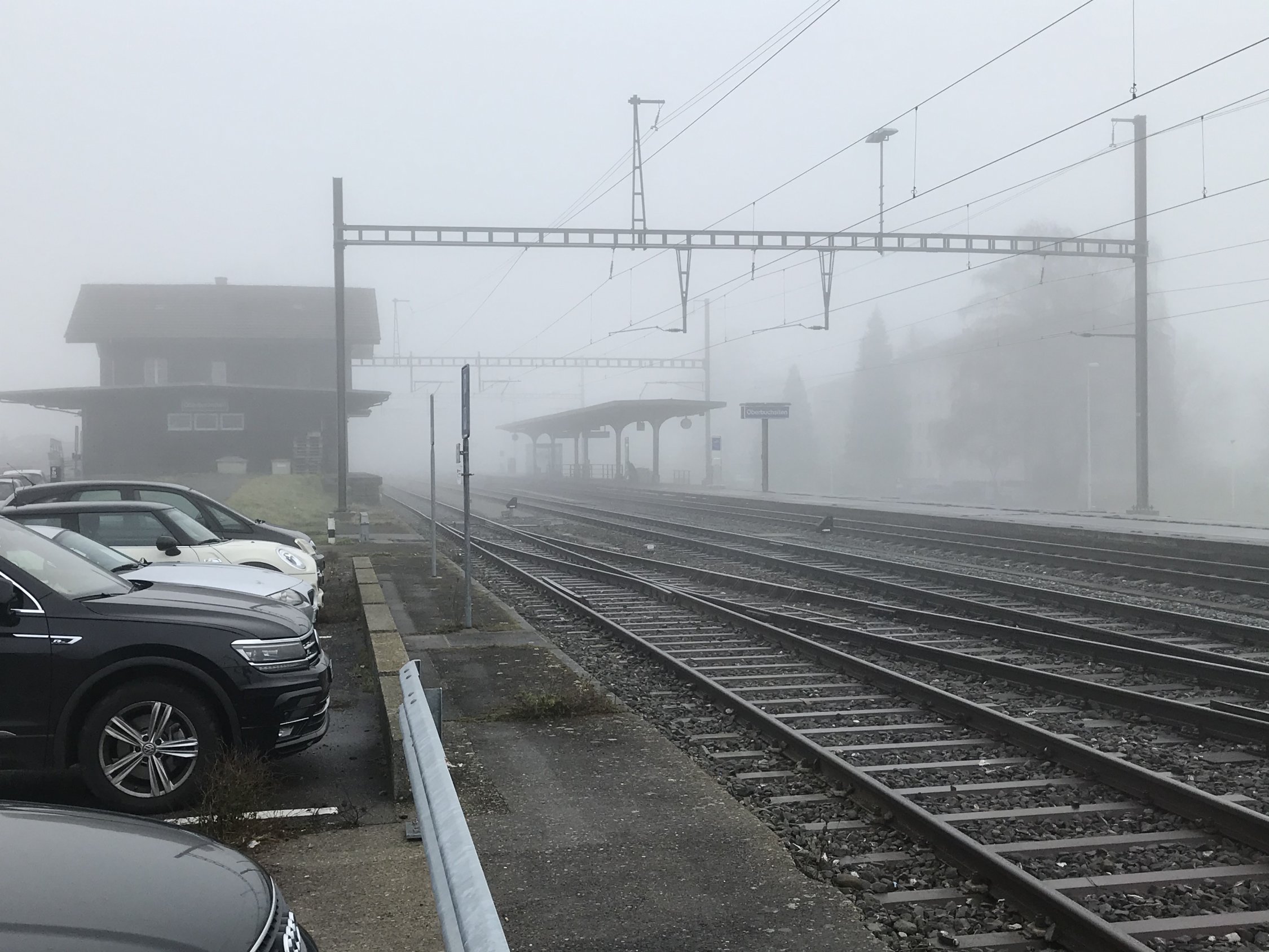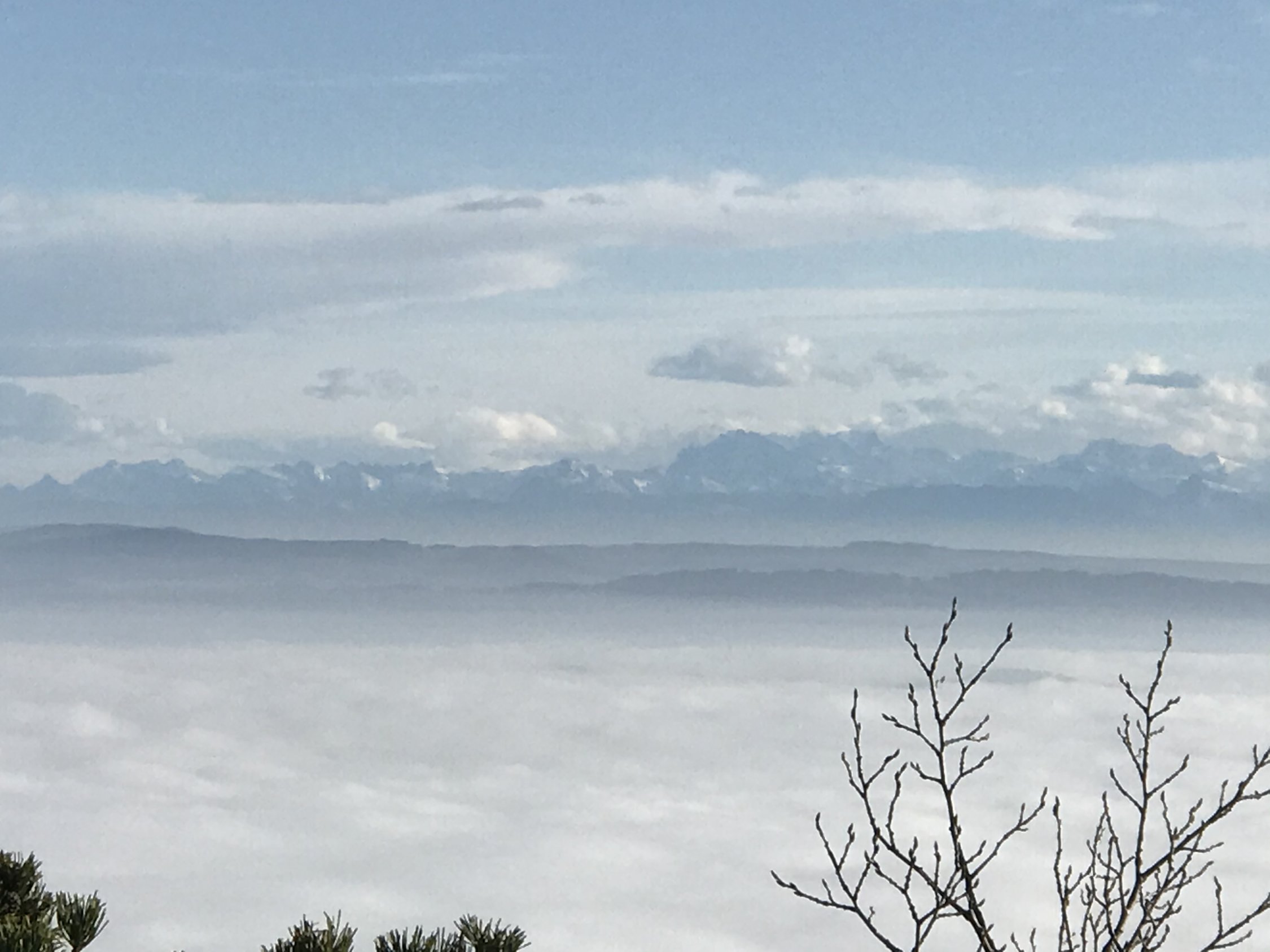 In Oberbuchsiten morgens um 11 Uhr Nebel und plus 3 Grad. Nebelobergrenze, wie vorhergesagt, bei 600-700 m. Über dem Nebel windstill und äusserst mild. Roggenflue gegen Mittag zuerst windstill, dann aus Süden auffrischender Wind. In den Alpen östlich des Reusstals und westlich vom Gantrisch recht schönes Wetter. Bereich Grimselpass bis Grindelwald sehr starke Bewölkung. Mittags um 14 Uhr kommt in Oberbuchsiten kurz die Sonne durch, ehe sie wieder im Nebel verschwindet.