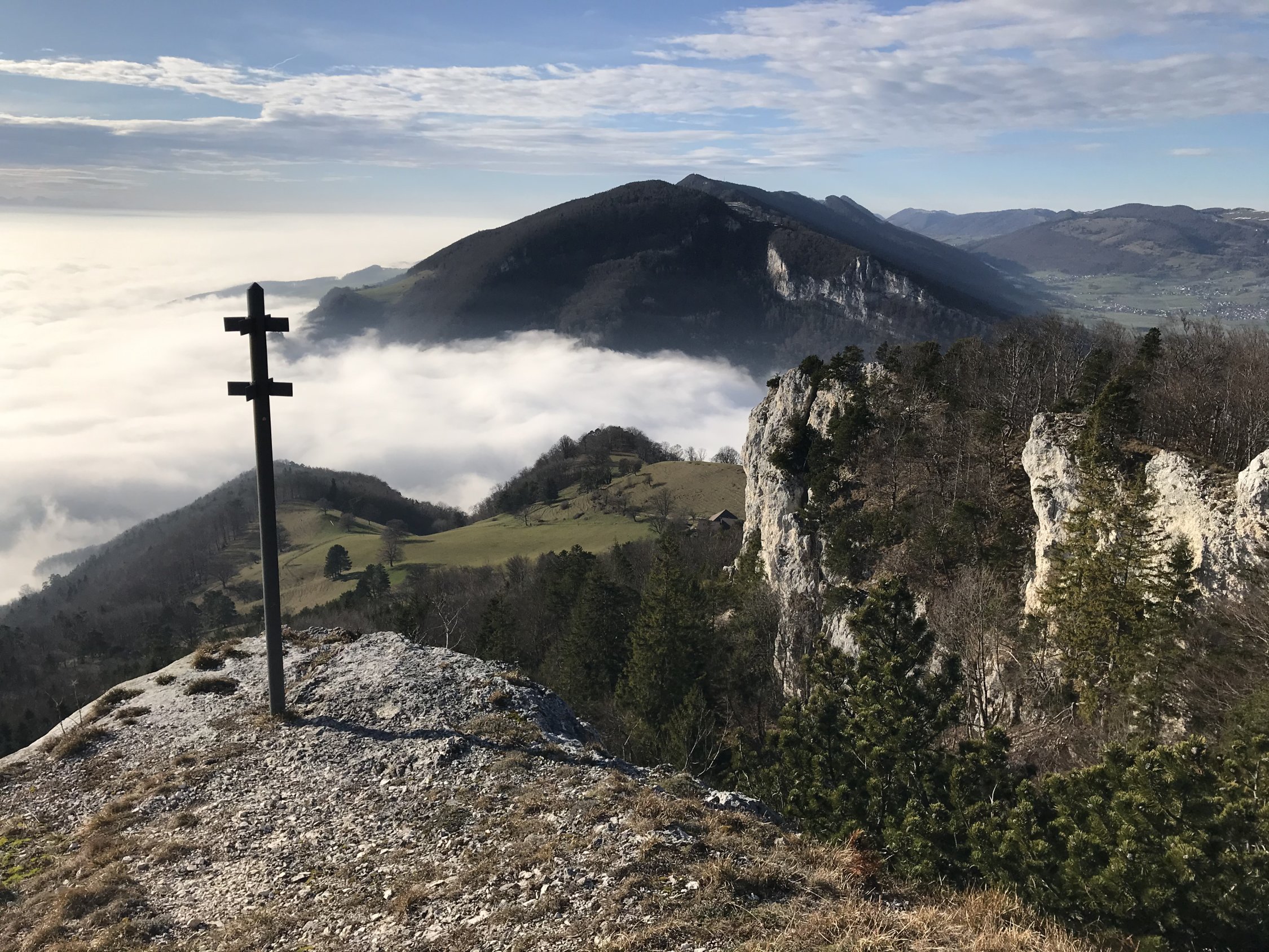 Ausklang der Bike-Saison 2019. Bei schönem Wetter tolle Aussicht vom Gipfel der Roggenflue auf einen Grossteil der Alpenkette. Herrlich, wie der Nebel des Mittellandes wie ein träger Fluss durch die Klus Richtung Balsthal zieht und sich dort langsam auflöst. Höhendifferenz und Zeitbedarf bezieht sich auf die Gesamtstrecke (16.3 km). Berghaus Oensinger Roggen um die Mittagszeit durch die mit Pkw zugängliche Roggenstrasse sehr belebt. Oberhalb der Wirtschaft hats ein geniales Sonnenbänkli, auf der man die gesamte Alpenkette im Blick hat. Wer nicht mit dem ÖV anreist, kann am Bahnhof Oberbuchsiten für CHF 4.-/Tag parken.