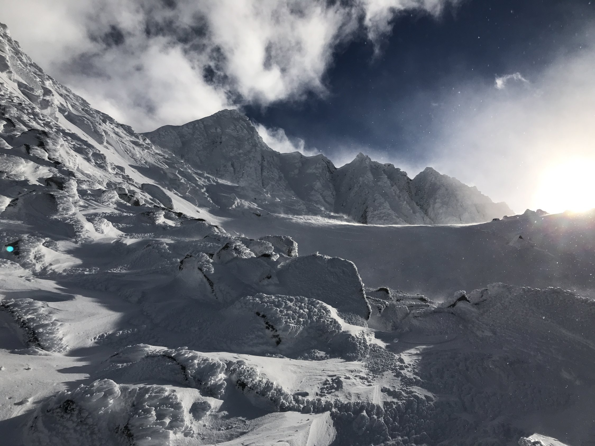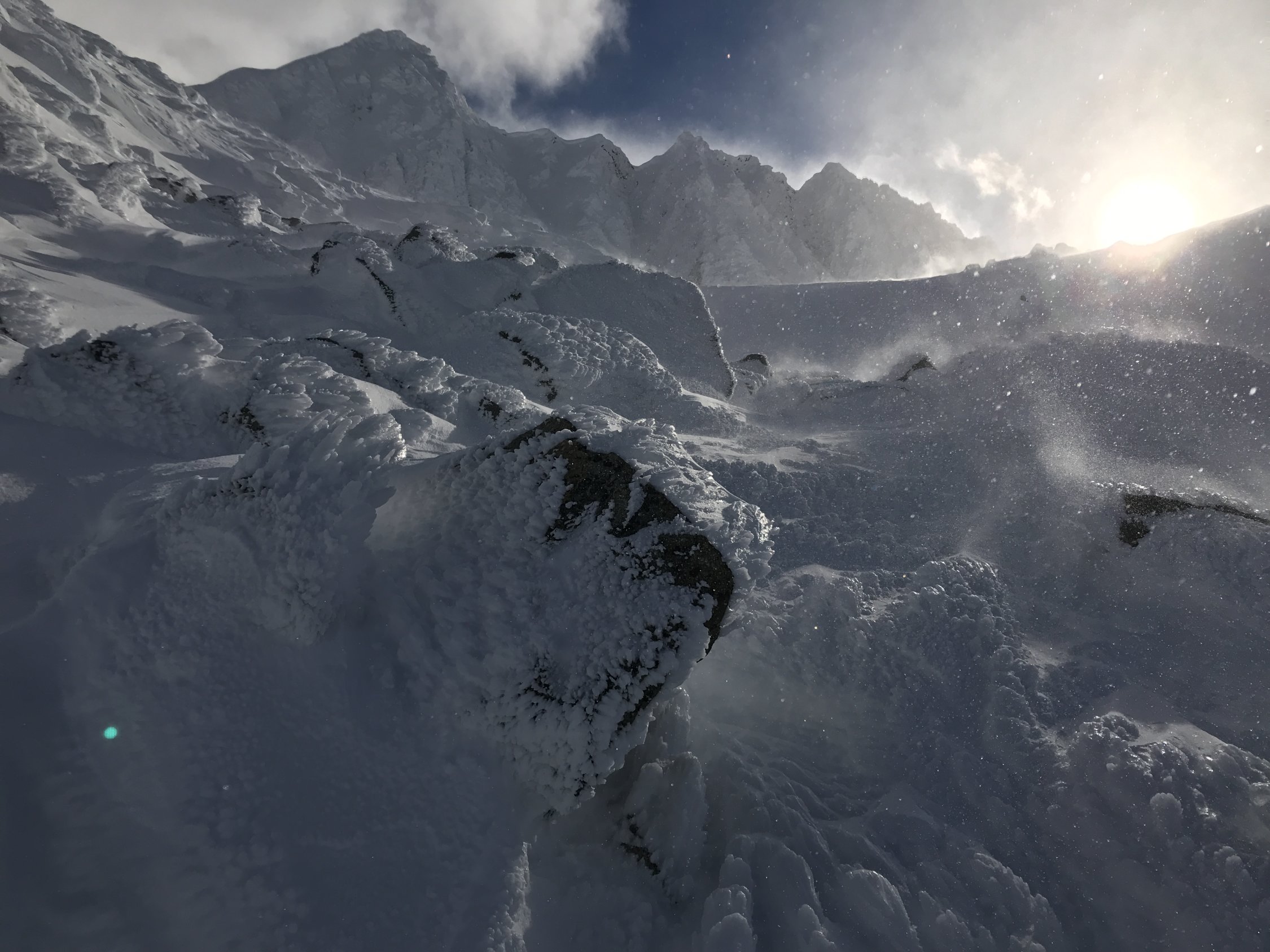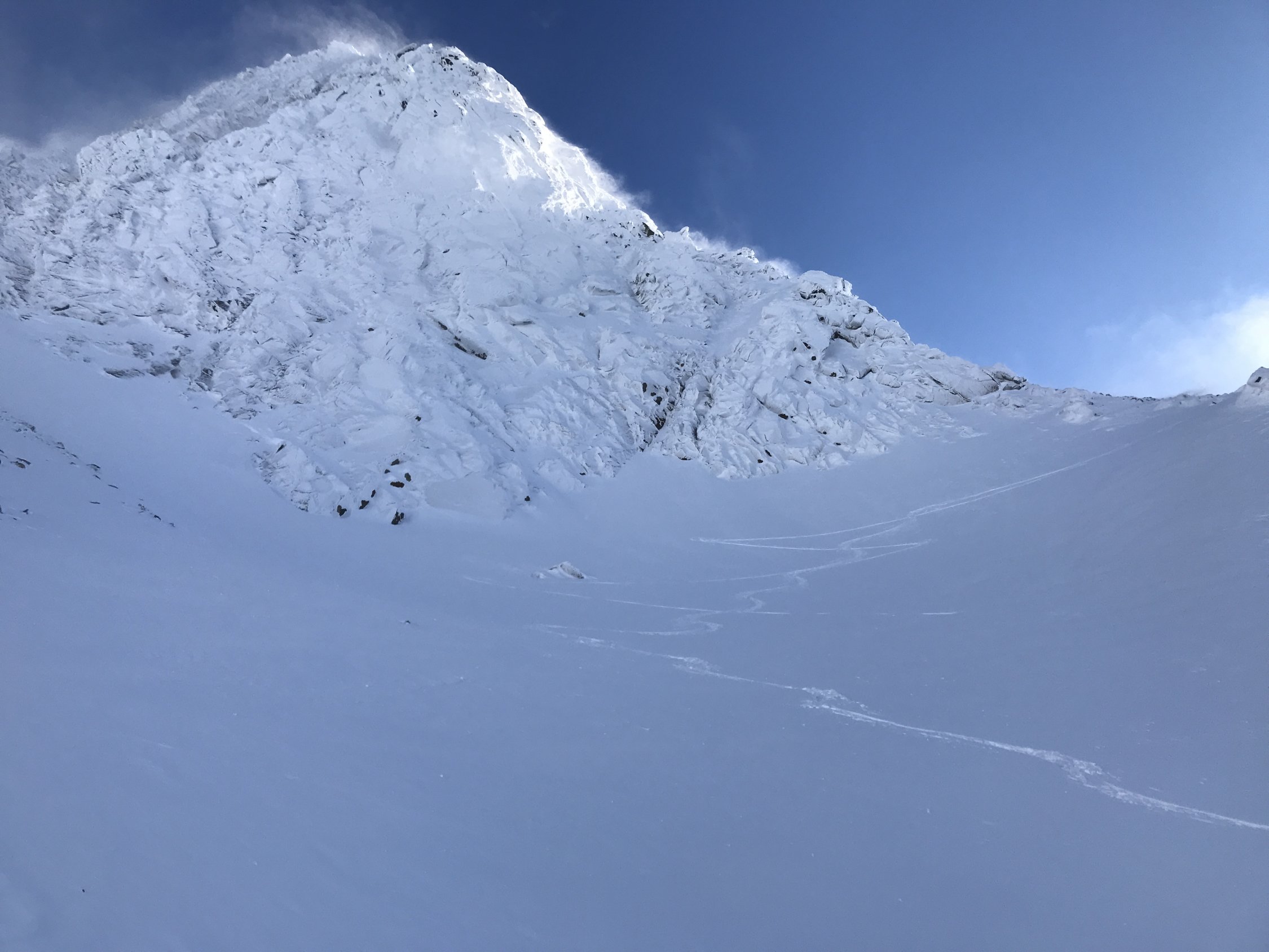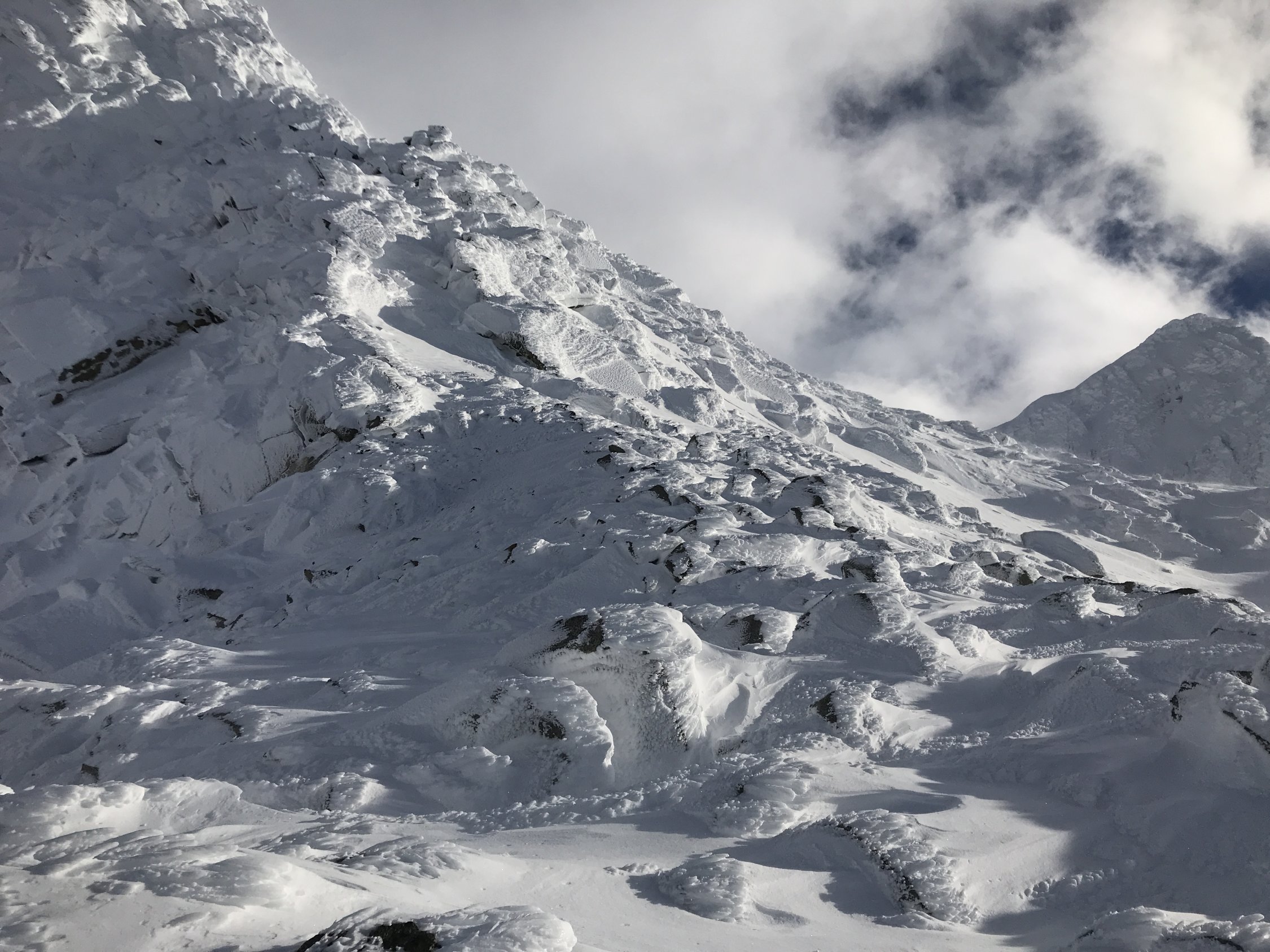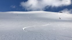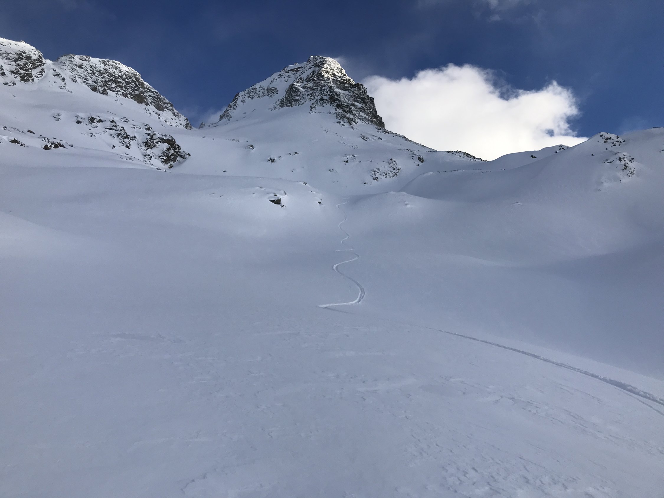 Ab ca. 2000 m.ü.M leicht windverblasen, was aber meine Kräfte beim Aufstieg schonte. Bis zum Schwarzhorngletscher, dank der Nordwindlage ein angenehmer Rückenwind. Auftstieg durch den Schwarzhorngletscher war problemlos - kein Triebschnee aber bestimmt 2 Meter gut gesetzter Pulverschnee in der Steilstufe. Danach starker Wind mit sehr starken Böen (> 30 km/h), zwischendurch ging die Sicht auf 0 Meter wegen dem aufgewirbeltem Schnee. Ich bin danach noch bis zum Joch aufgestiegen um den Aufstieg zum Surettahorn einzusehen. Der Wind hat die Aufstiegsroute mit Triebschnee geladen, ein mittelgrosses Schneebrett ist abgegangen. Ich hätte den Aufstieg auch bei weniger Wind nicht gewagt. Abfahrt, entlang der Aufstiegsroute, durchgehend Pulver. Auf den Räzünscheralpen hat sich in den paar Stunden einiges an Triebschnee angesammelt.