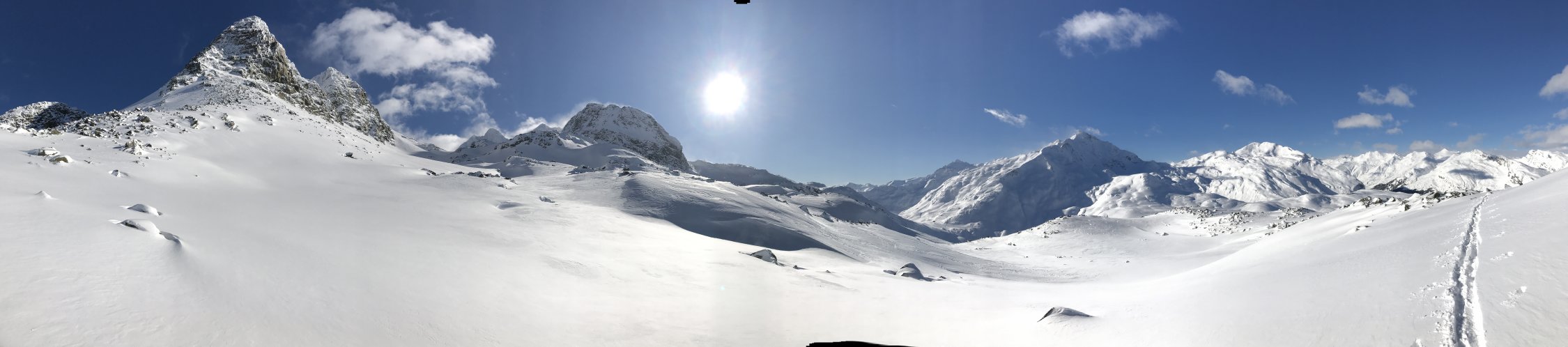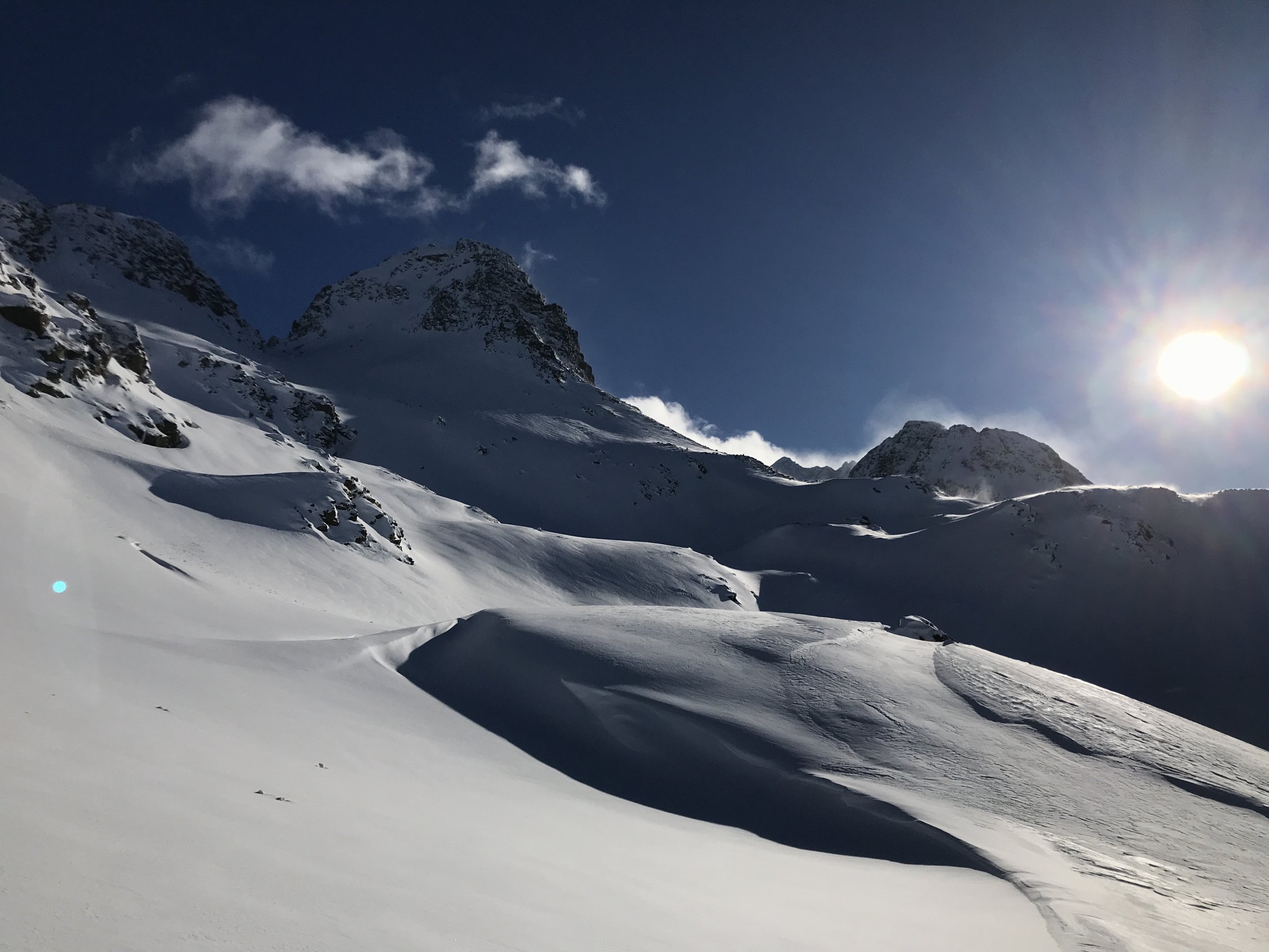 Falls der Wind ähnlich bleibt und es keinen Neuschnee gibt, sollte es bis zum Surettajoch noch lange gut bleiben. Den Aufstieg zum Horn würde ich vor Neujahr nicht wagen.