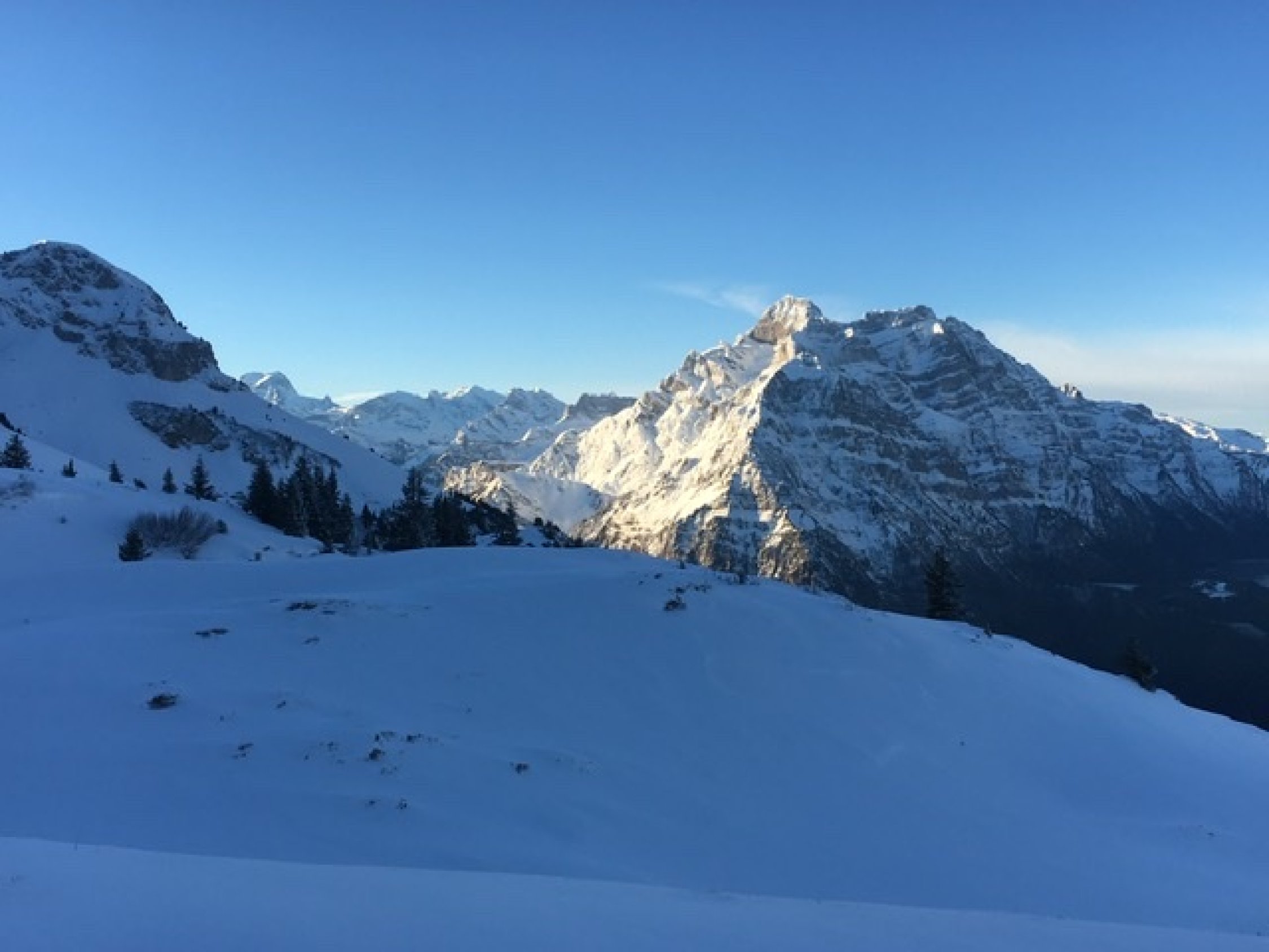 Abfahrt in den Mulden ausgezeichnet, 5-10cm Pulver auf gefrorener Unterlage welche nur teilweise durchbricht.