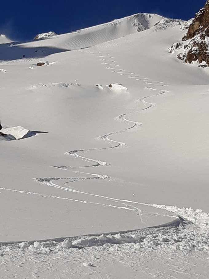 Sehr gut zu fahrender Pulverschnee, das Gebiet ist sehr gut eingeschneit.