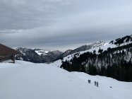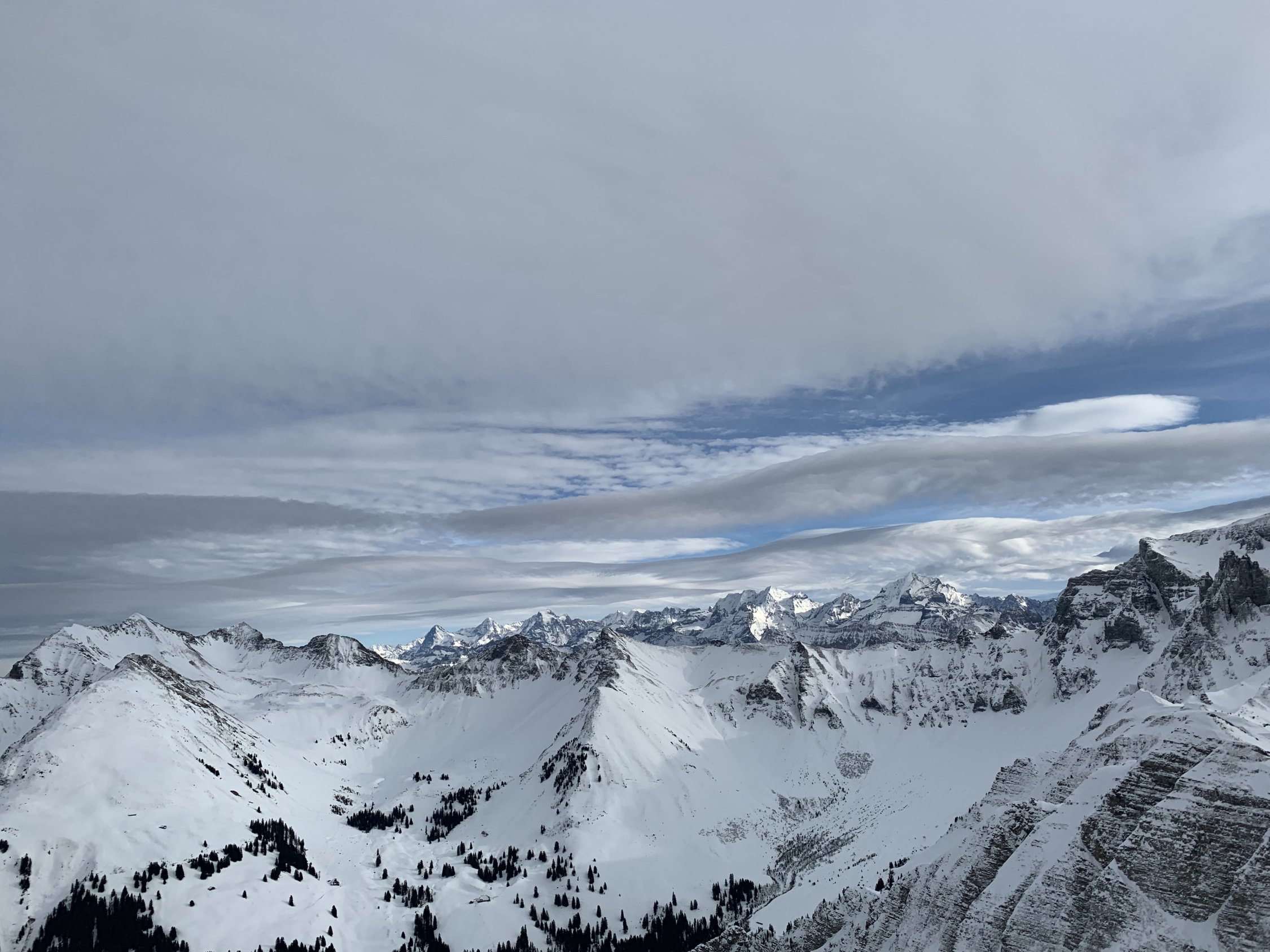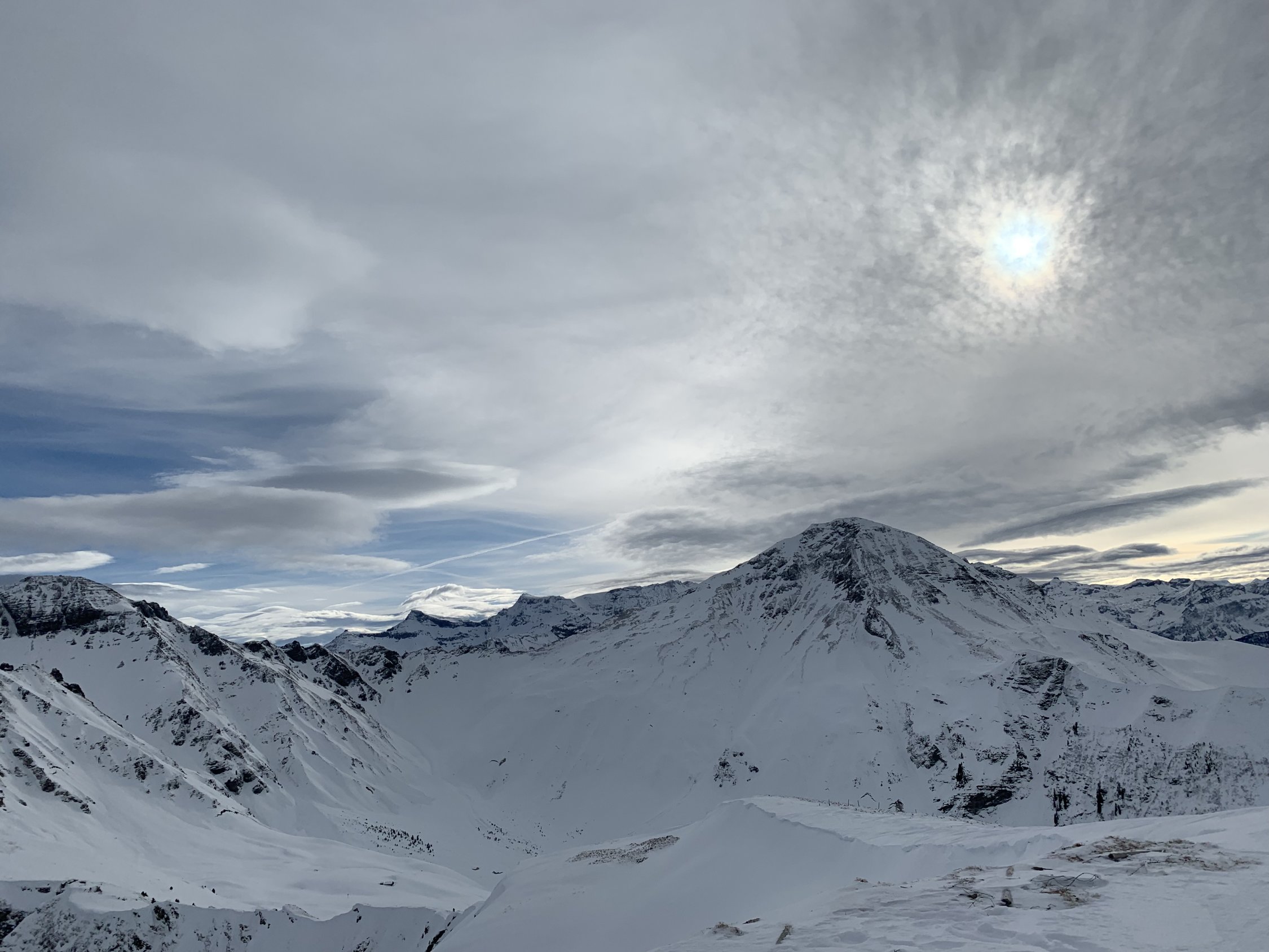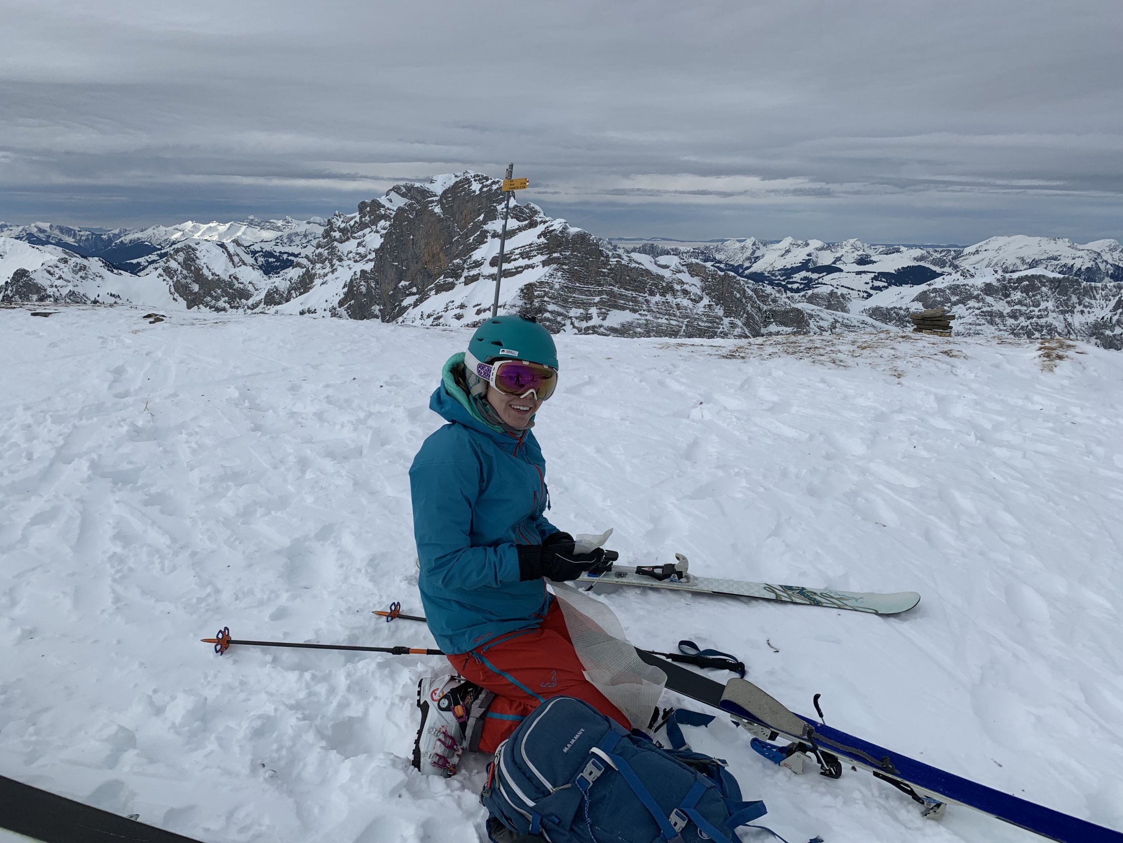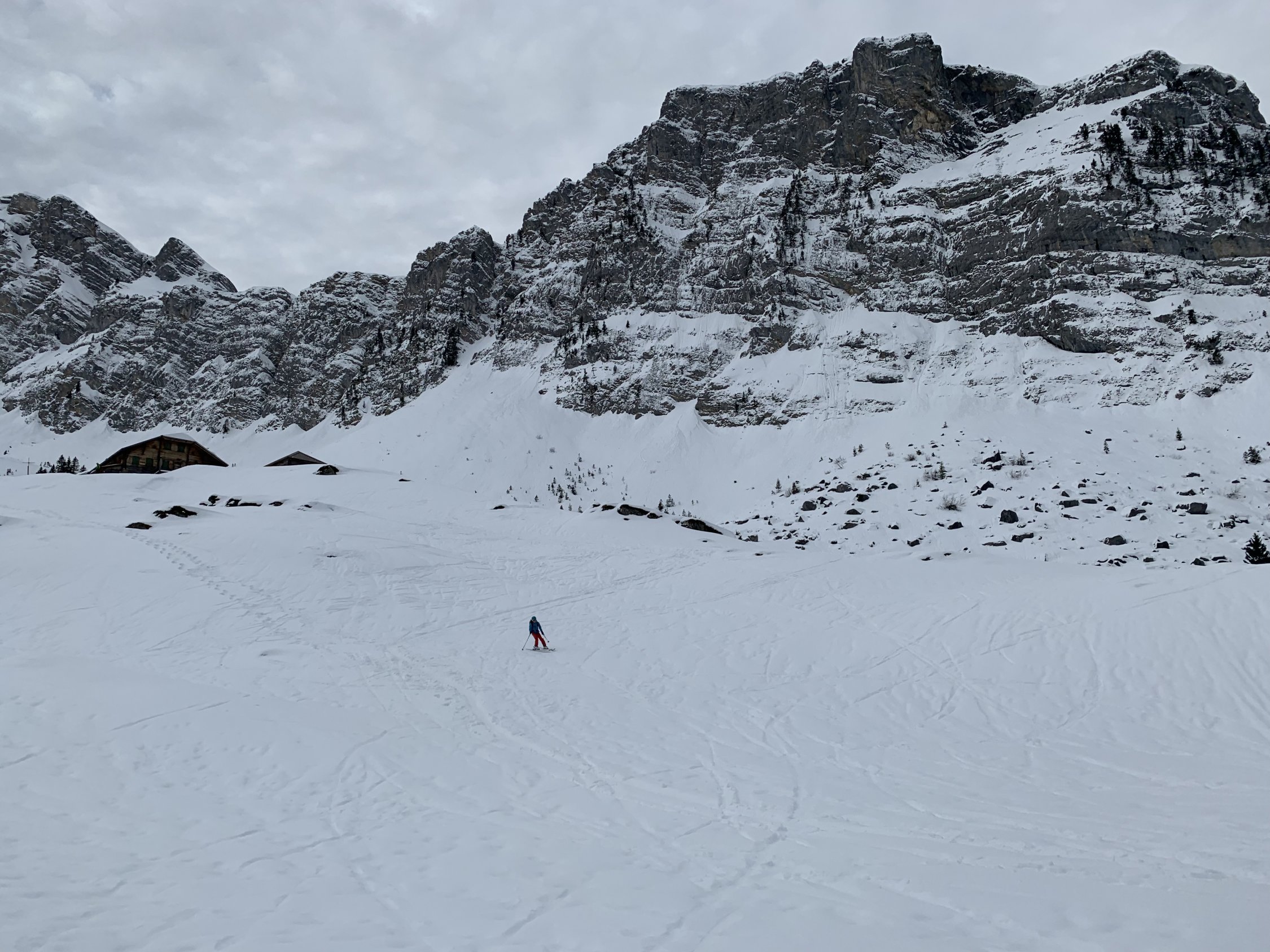 Abfahrt Pistenähnlich, im Gipfelhang stark verfahrerner gepresster Pulver ab Grimmifurggi auf tragender harter Schneededecke bis Alp Grimmi. Weg ab Alp Grimmi Piste. Die Unterlage wäre jetzt da...