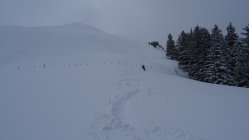 Ich bin heute nachdem es langsam Aufhellungen gab um 12 Uhr zuerst auf den Birehubel,danach Schibespitz und die NW-Flanke Abgefahren.