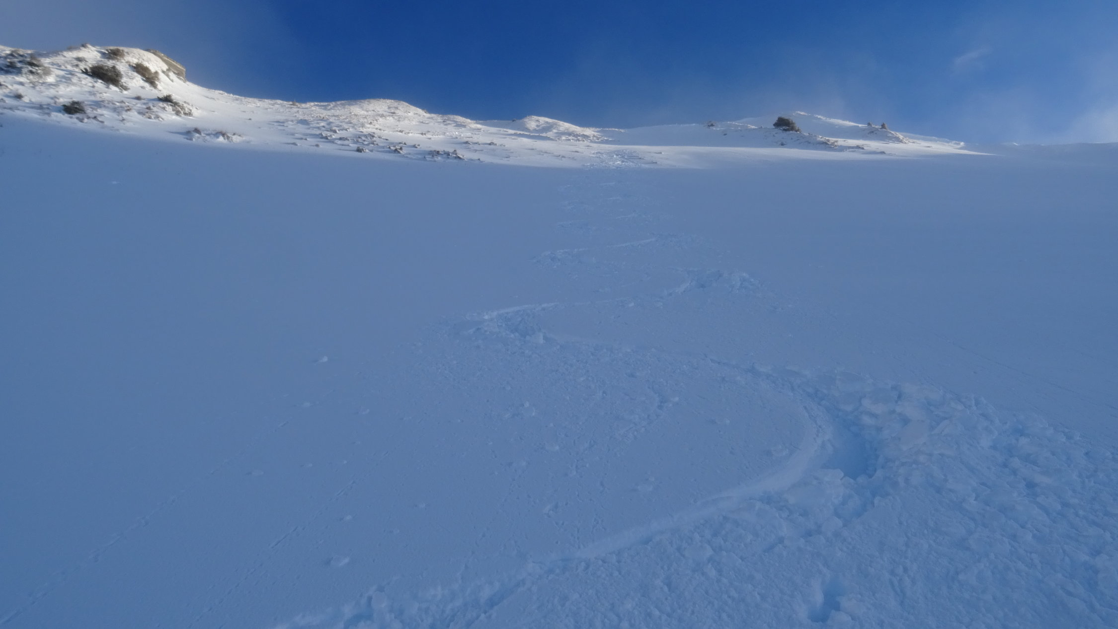 Von der Lawinengefahr her war heute eigentlich nur der Morgetenpass die grösste Herausforderung denn die Paar Skitüreler die am Morgen da waren lösten kurz vor dem Pass ein Schneebrett aus das die obersten 20cm abgleiten liess