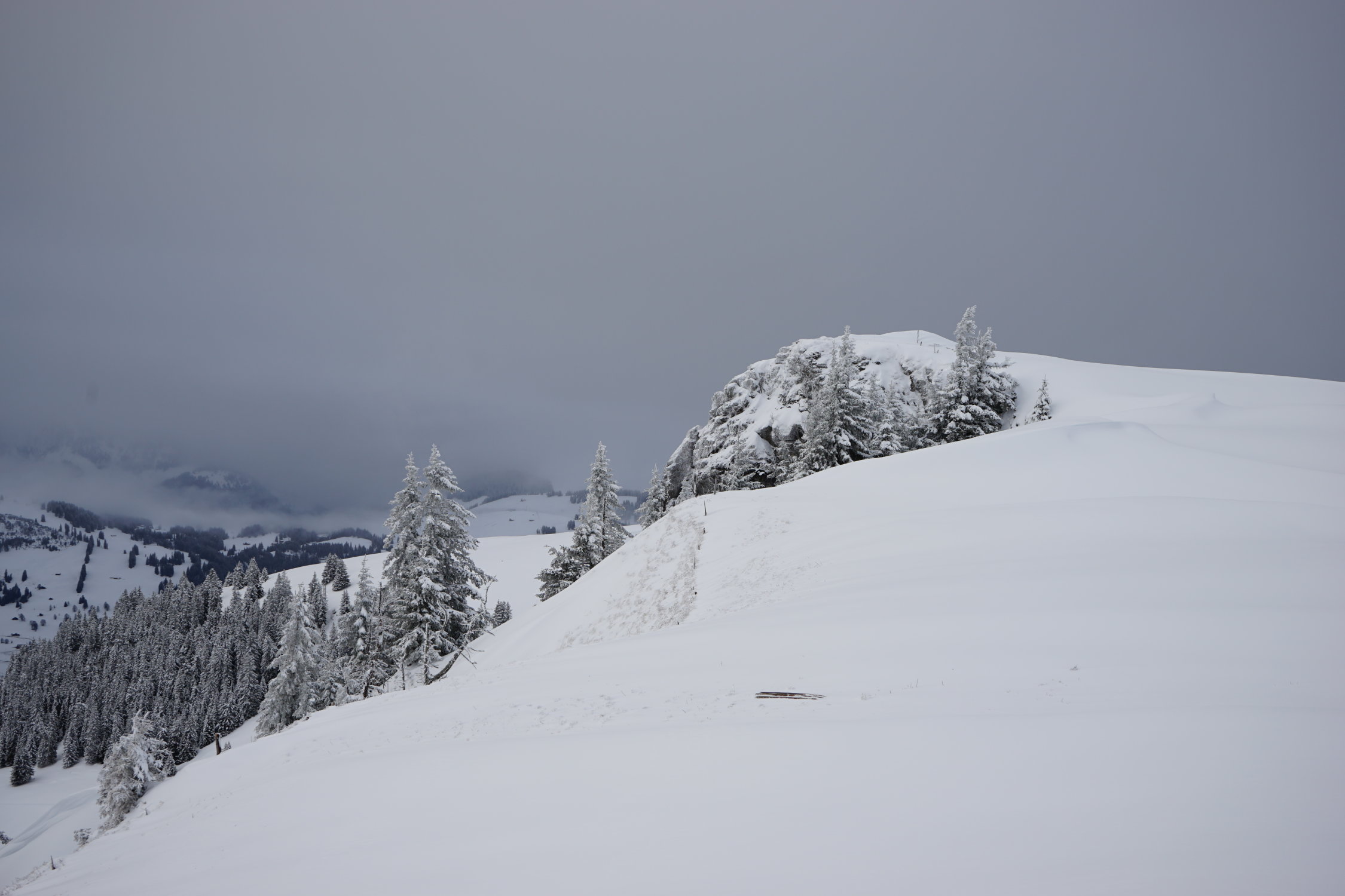 Bei Abmarsch vom Parkplatz 1°C und sehr knapp oberhalb Schneefallgrenze. Leichter Schneefall bis zum Gipfel. Später einige blaue Löcher. Spuren war ab Abzweig Stand angesagt. Bis 1650 nasser Neuschnee danach feuchter Neuschnee. Bis auf den Grat kaum Windeinfluss von letzter Nacht. Über den Grat etwas Windharst. Hatten Glück bei der Abfahrt und erwischten etwas fahler Sonnenschein. Genug um etwas von den Konturen zu sehen. Erste Hänge bis Obergestelen und weiter durch den Chüewald gut zu fahren. Ab da zunehmend Nass bis Brätliplatz. Von hier weg bis ins Tal schwacher Regen. Alpstrasse mit genügend Speed gut zu fahren.