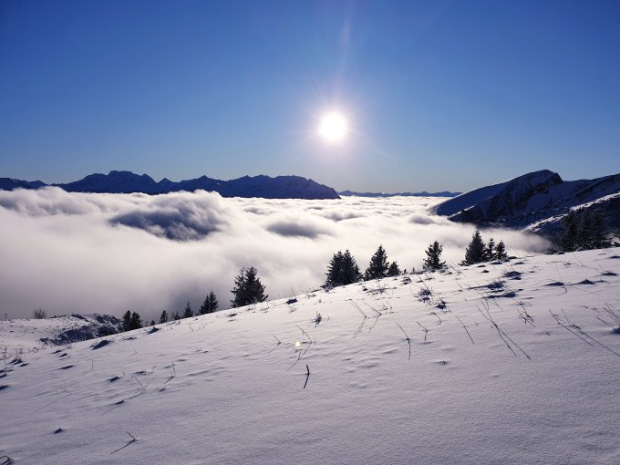 Aufgrund Einstrahlung wird der Pulver schwerer und unten rum eher Nass und schwerer zu fahren