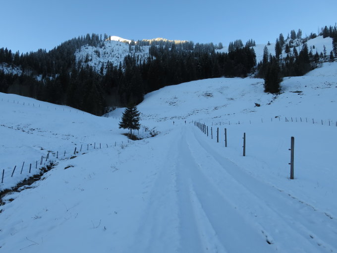 Leider hat es sehr hoch geregnet. Wir haben bei der Alp auf ca. 1350m parkiert (gefrorener Schnee auf der Strasse - mit unserem 4x4 ist das aber problemlos gegangen).