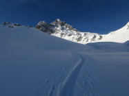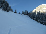 Bei den ersten ca. 500m ist die Schneedecke gut gefroren. Dann ein mühsamer Deckel bis ca. 1550m - kurz unter Alp Ramsli. Ab dann ca. 20cm schönster Pulverschnee auf einer harten Unterlage. In den Mulden natürlich viel mehr.
