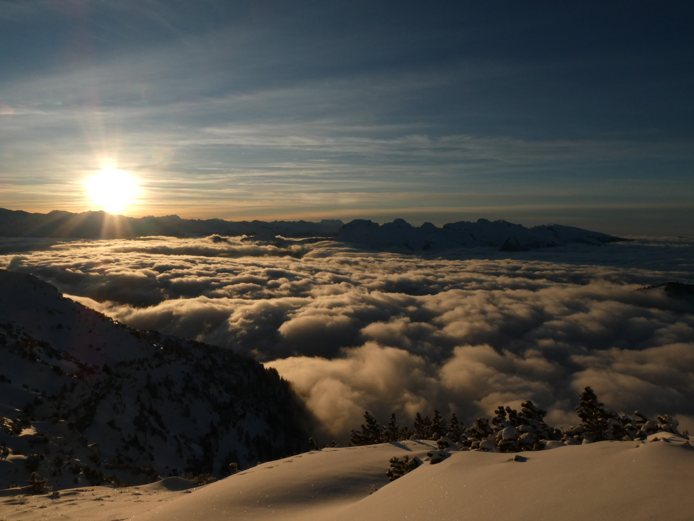 Start um ca.13.30 bei -2° und fast wolkenlosem Himmel. Nebelobergrenze zuerst um rund 1300m, später ansteigend.