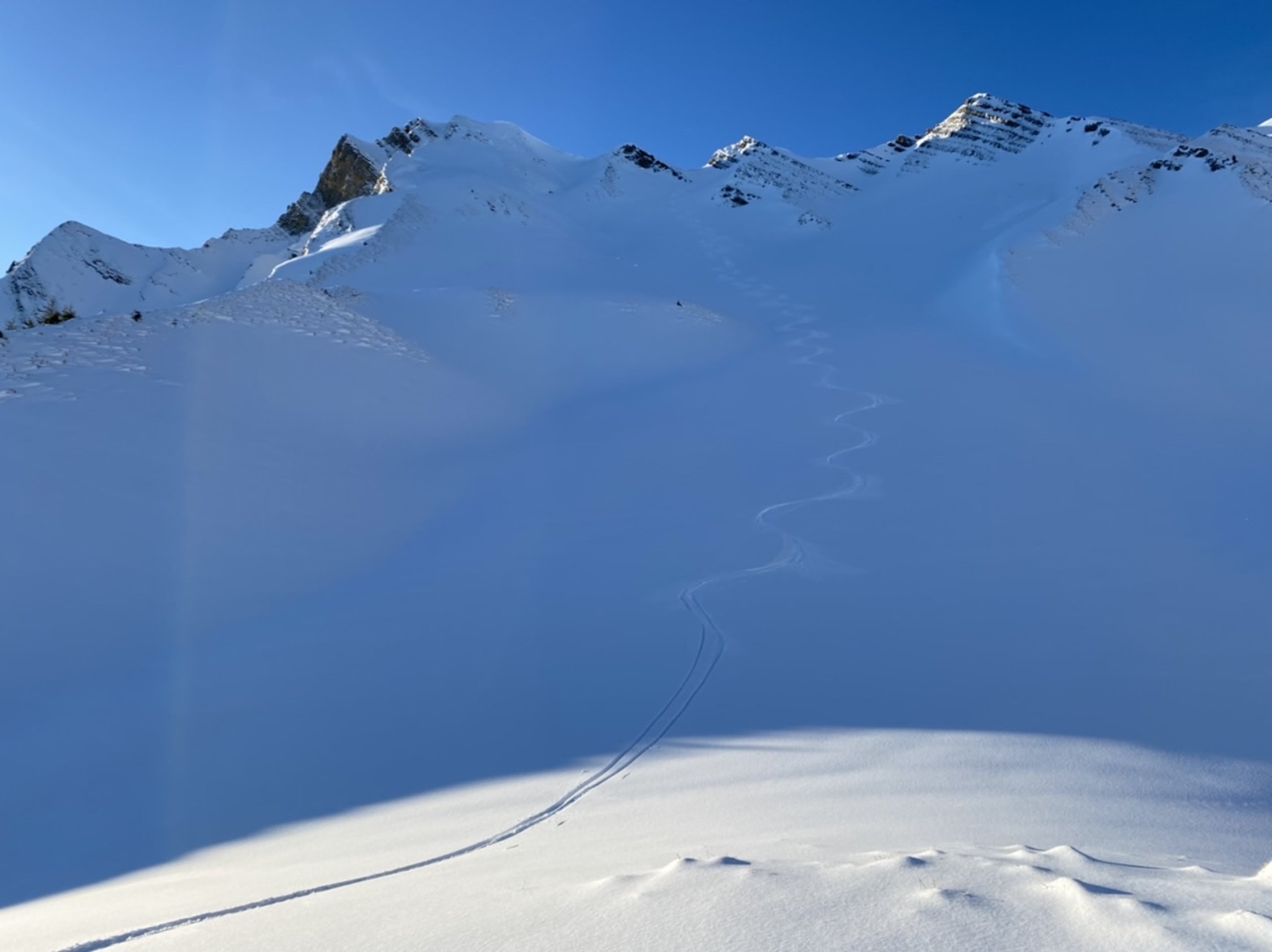 Abfahrt in den großen Hang kurz vor dem Turner.