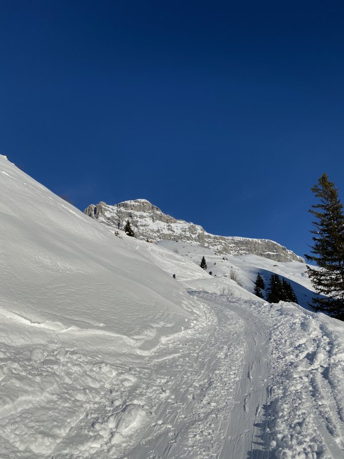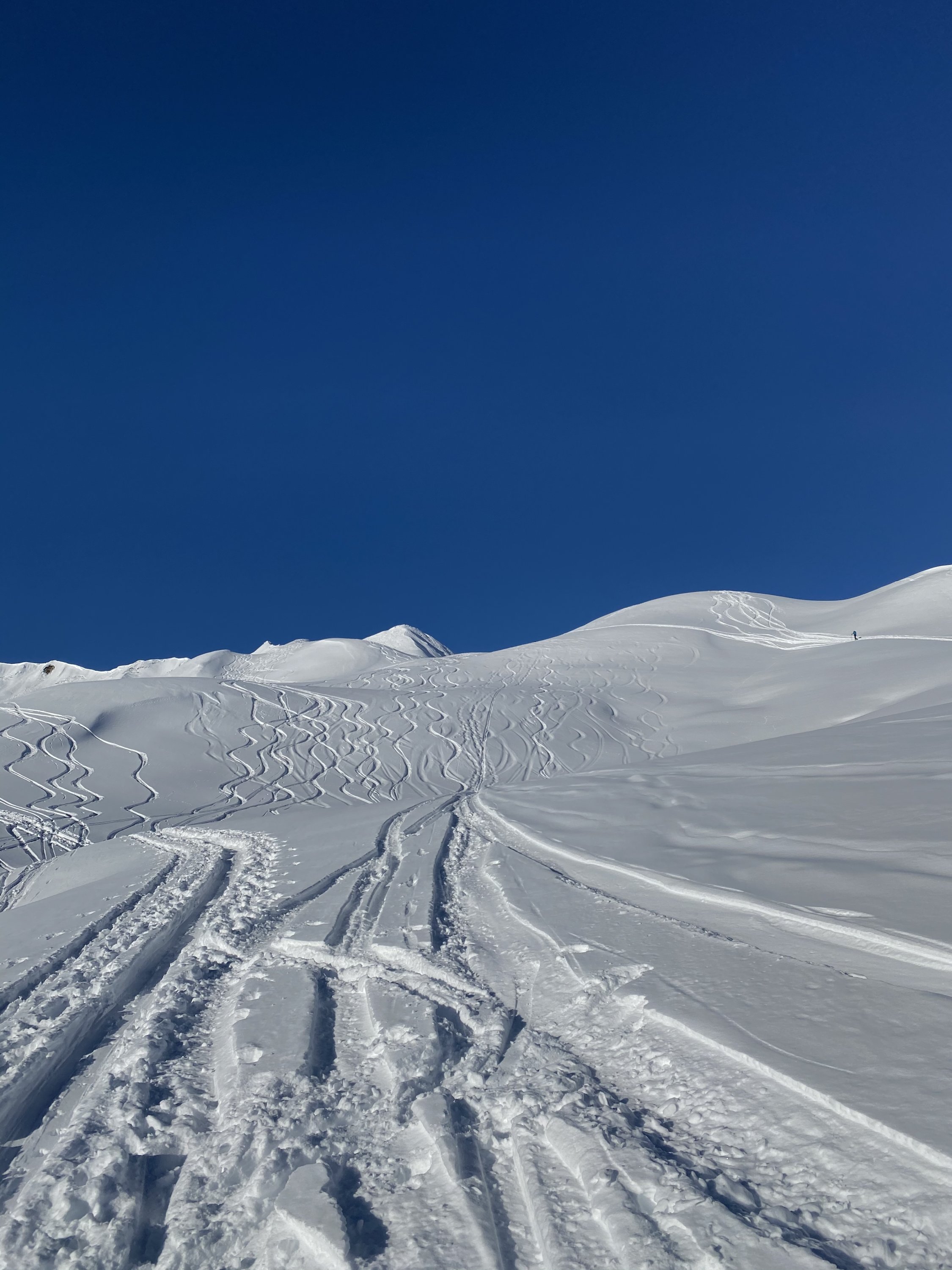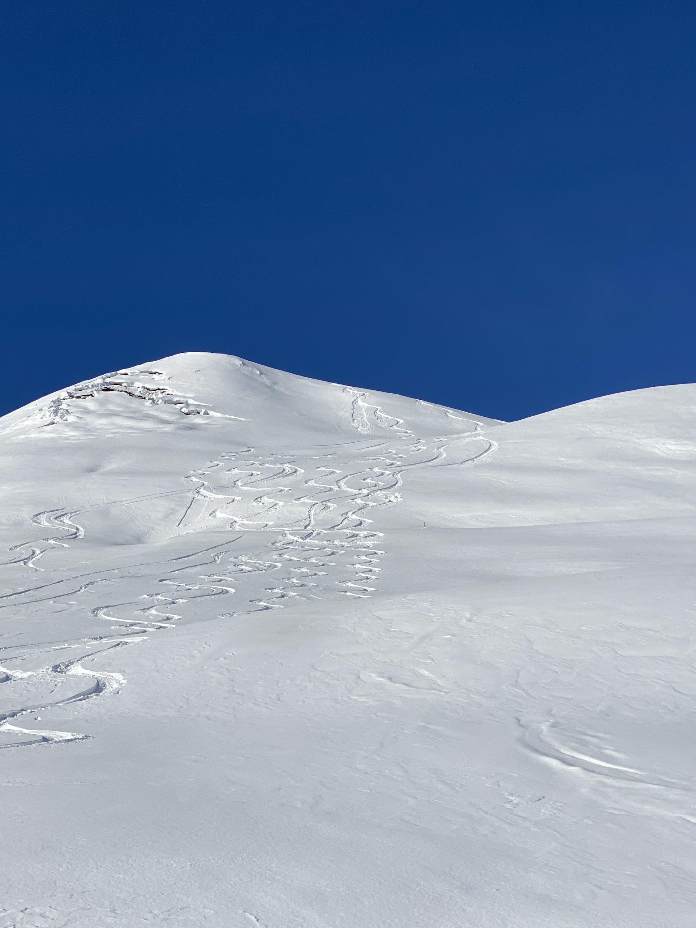 Top Schneebedingungen auf der ganzen Tour. Viele Spuren führen zum Gipfel. Trotz den vielen Tourengeher hat es immer noch unberührte Hänge.