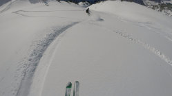 Der Gipfelhang bekommt vermutlich einen Deckel. Im Wald und im Schatten sollte sich der Pulver noch etwas halten. Ansonsten auf jeden Fall weiterhin eine absolut lohnende Tour.